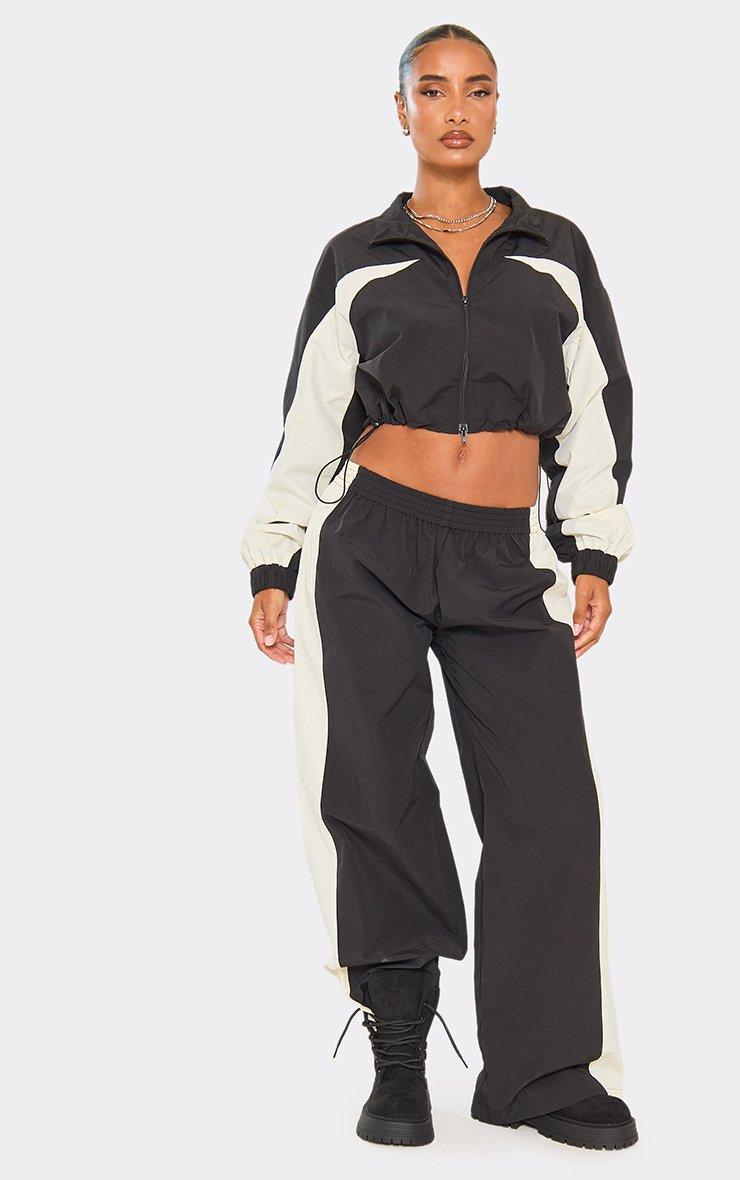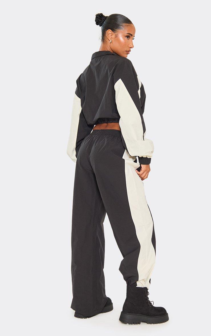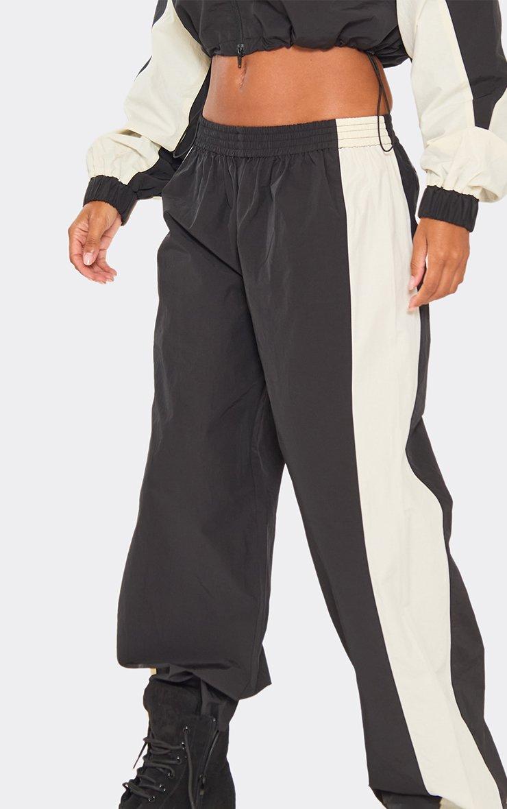Low Rise Contrast Panel Detail Track Pants In Black