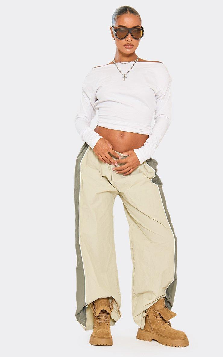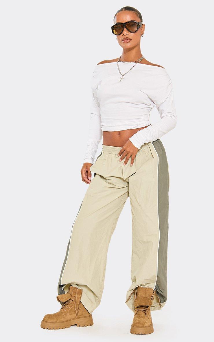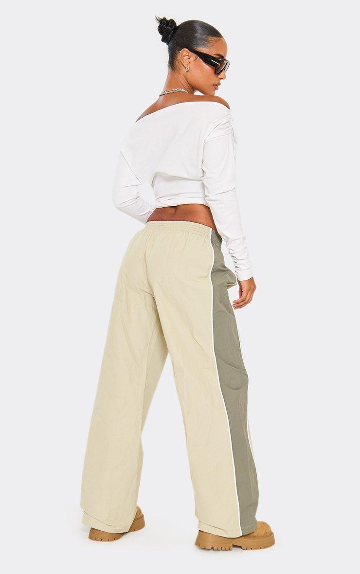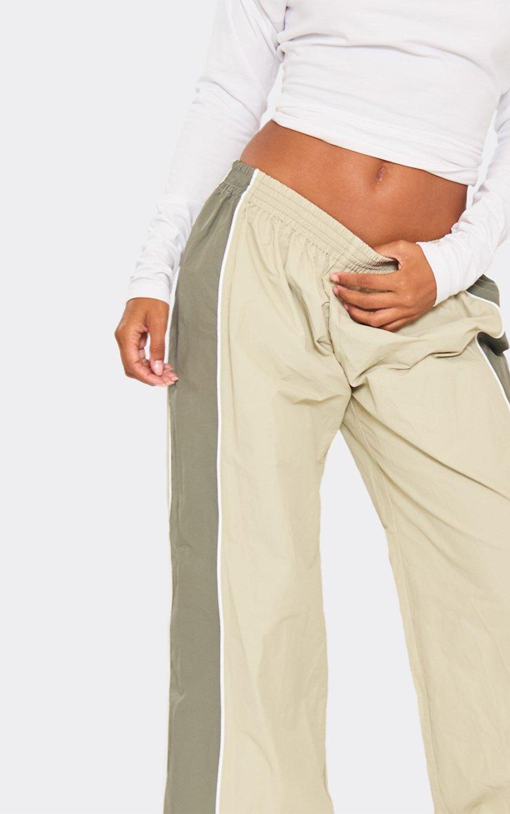Low Rise Contrast Panel Track Pants In Sage Green Shell