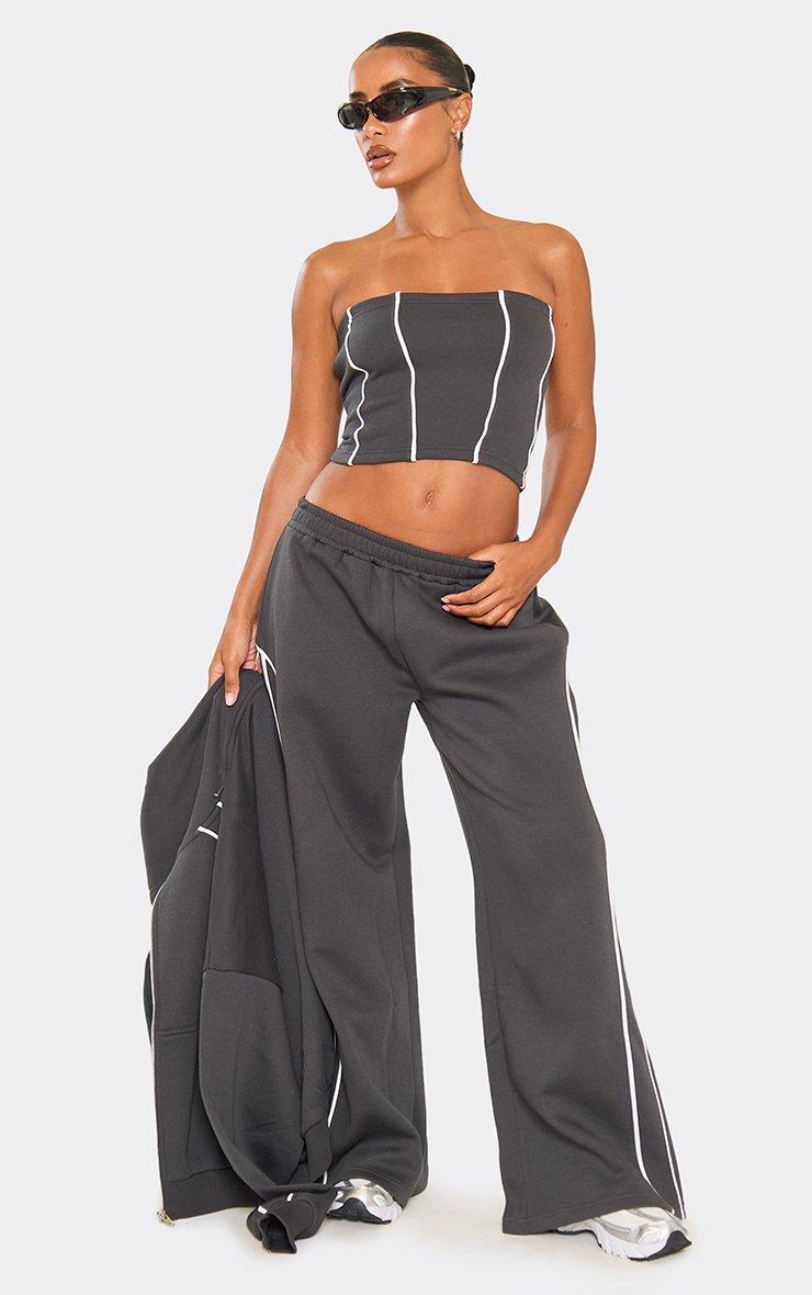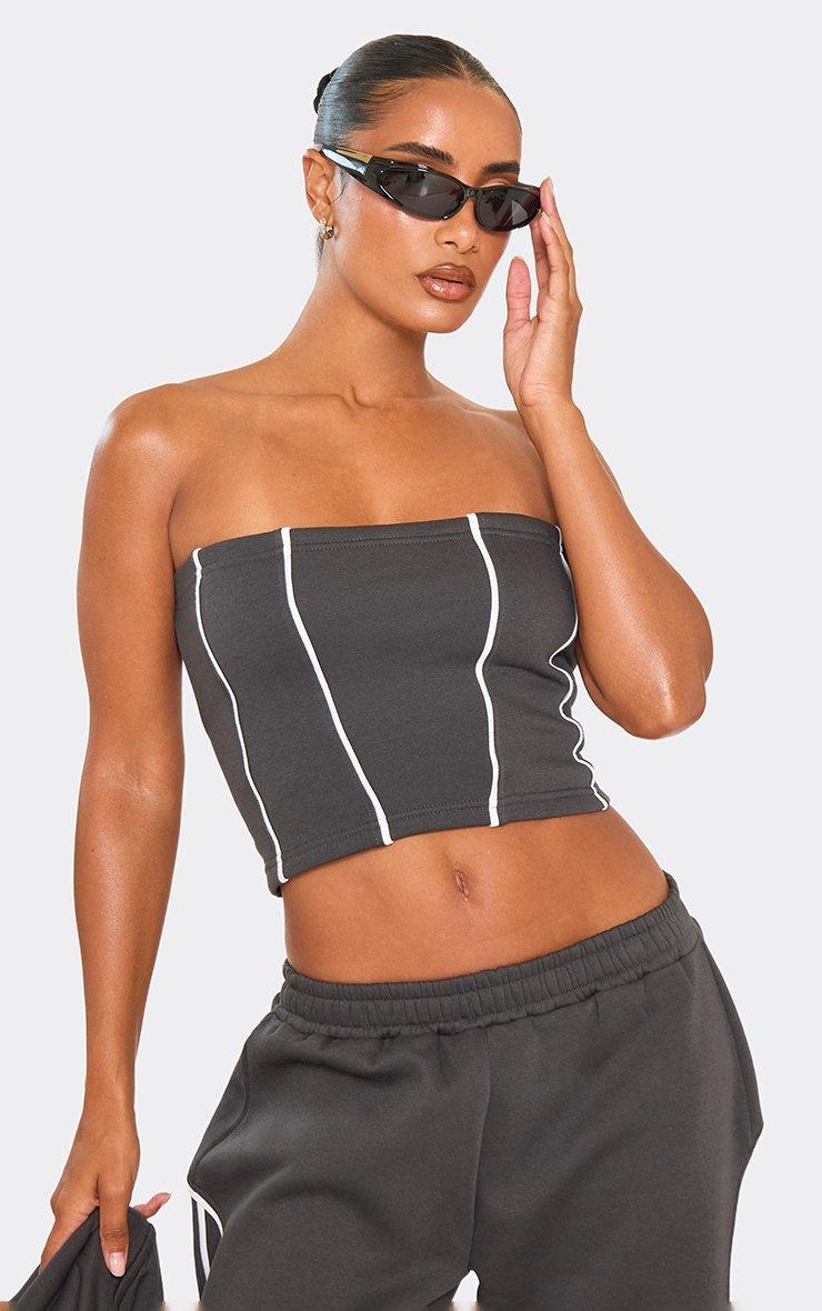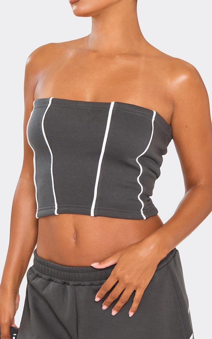 Bandeau Contrast Piping Detail Sweat Top In Dark Navy Blue