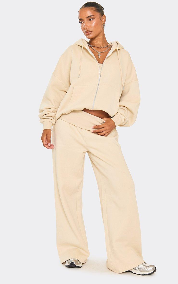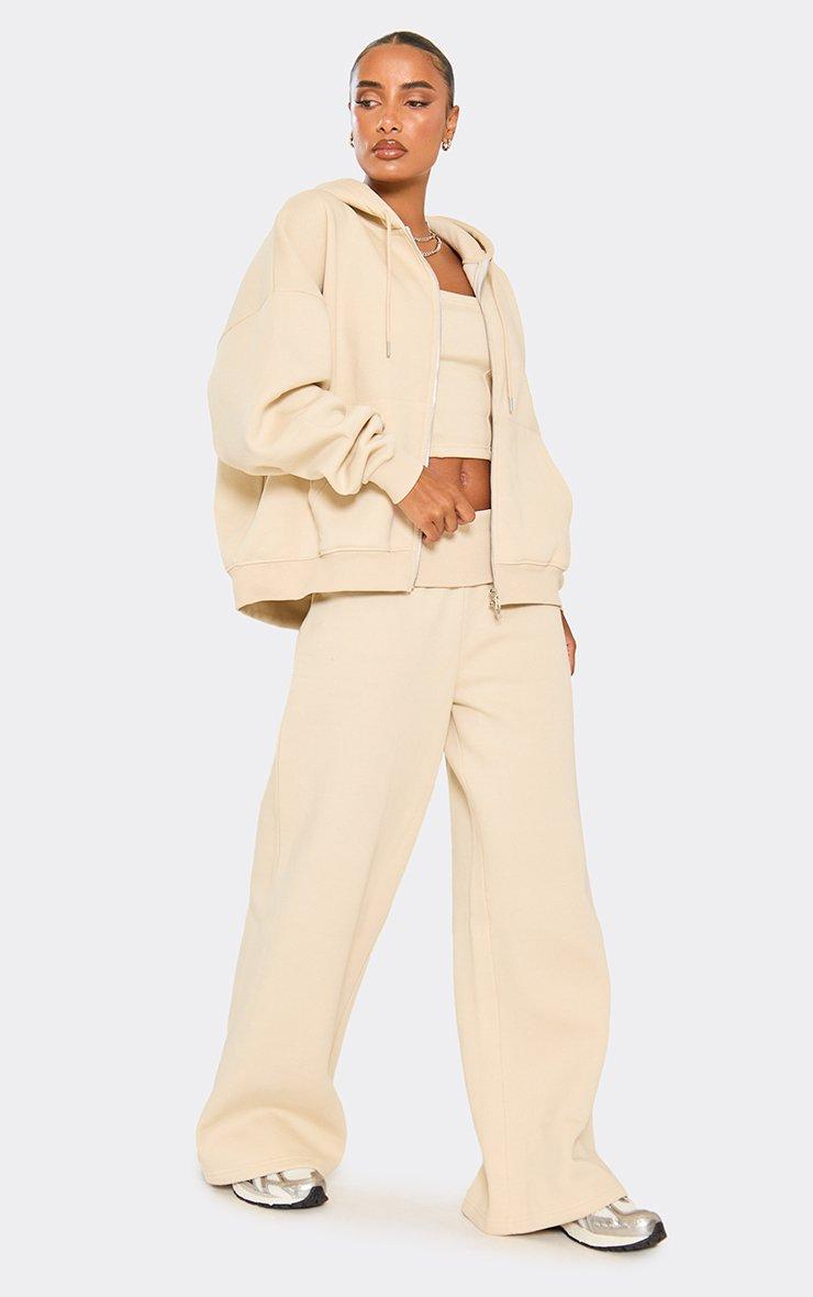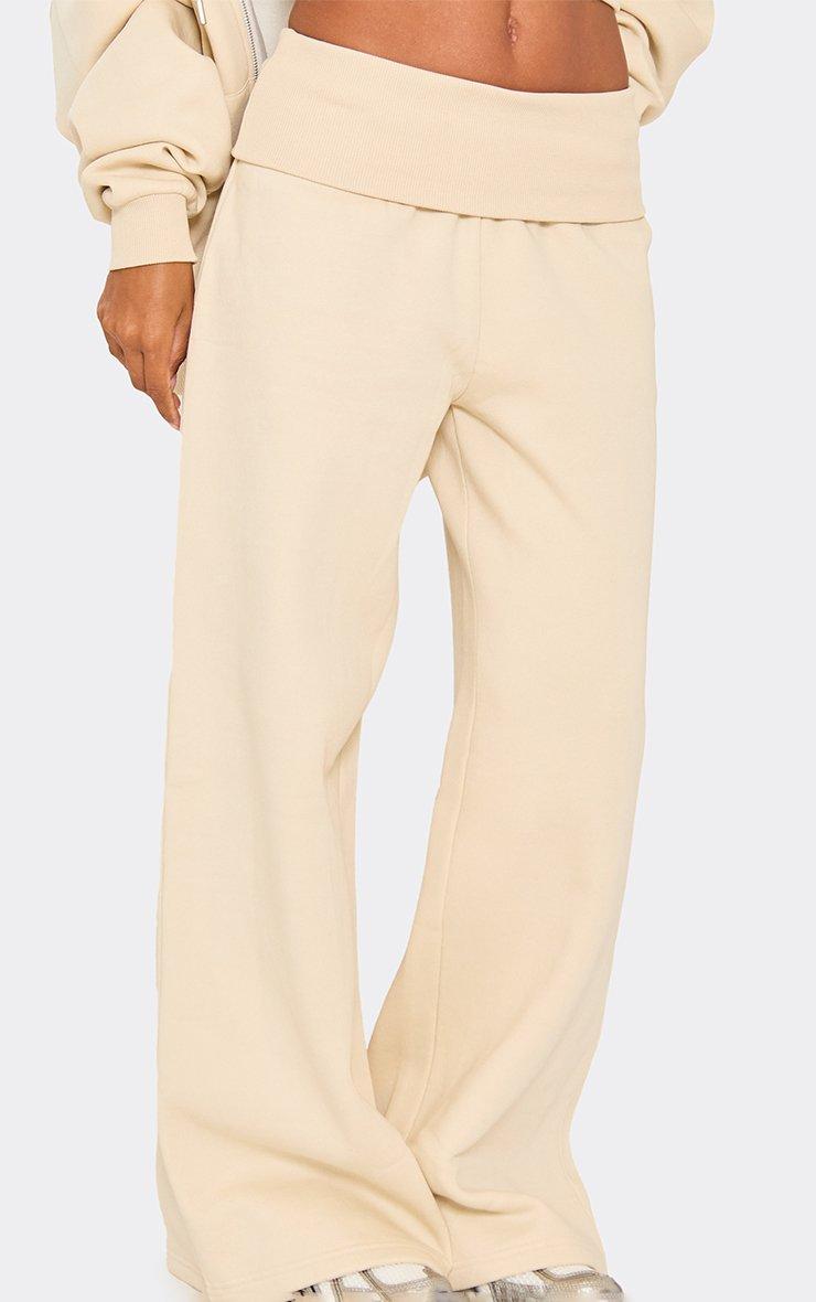 Contrast Panel Detail Wide Leg Joggers In Stone