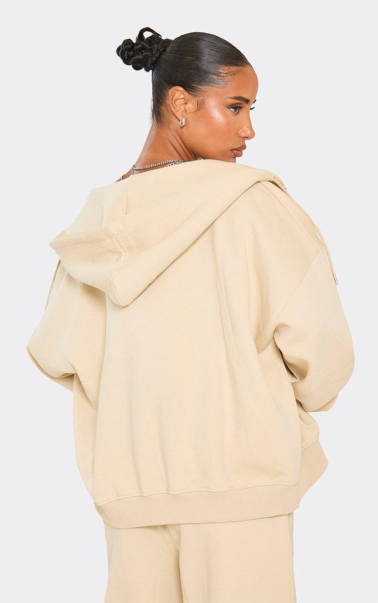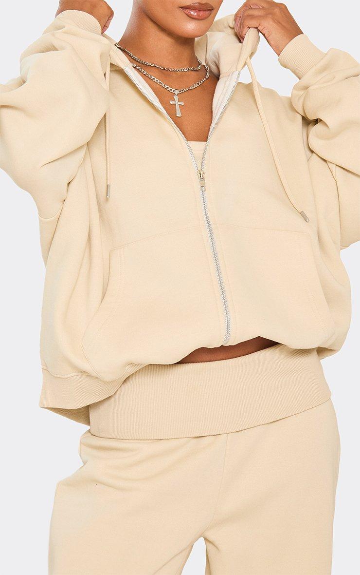 Long Sleeve Zip Up Front Cropped Hoodie In Stone