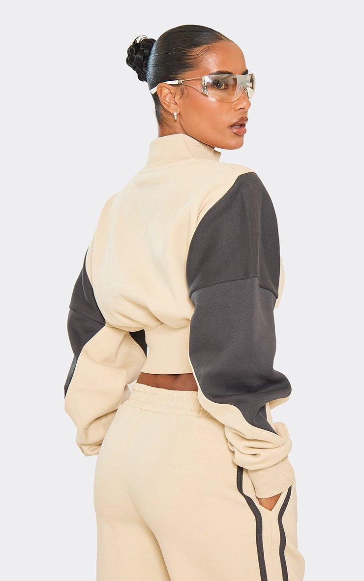 Contrast Panel Cinched Waist Zip Up Detail Sweatshirt In Stone