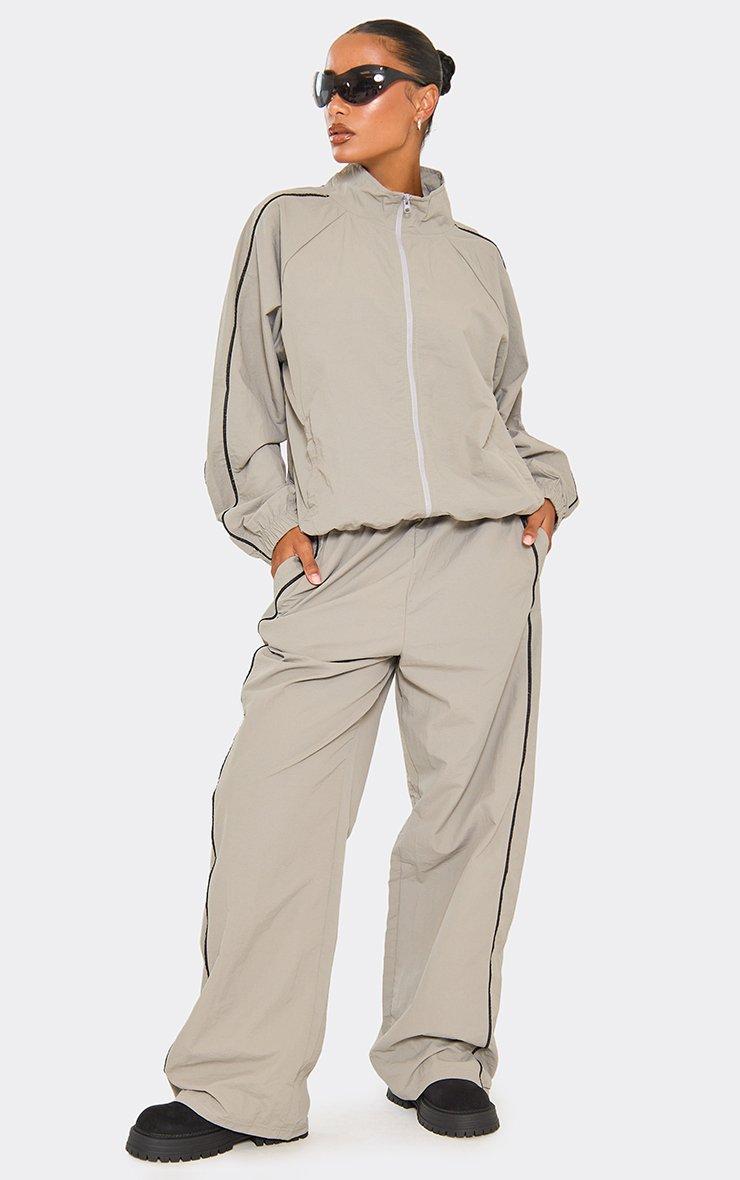 Oversized Mid Rise Contrast Stripe Wide Leg Joggers In Grey