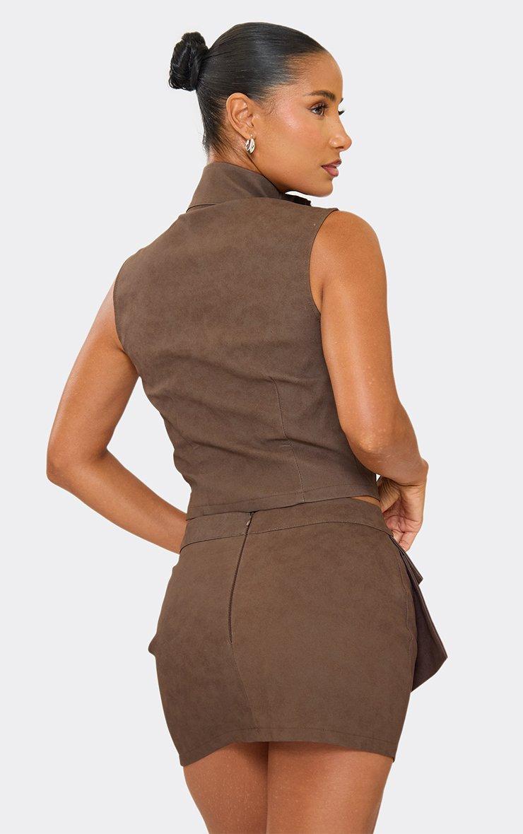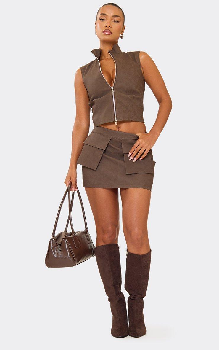 High Waist Cargo Pocket Mini Skirt In Brown Faux Leather