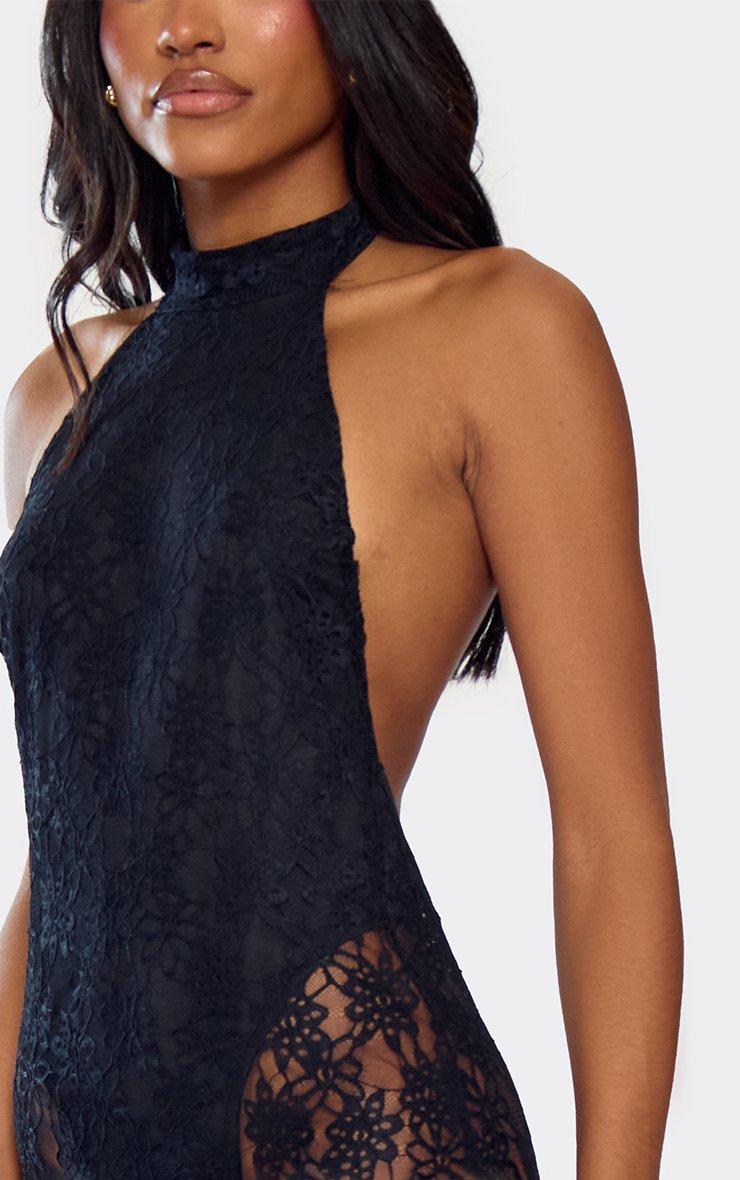 Halterneck Bodysuit Lining Scooped Back Detail Maxi Dress In Black Floral Lace