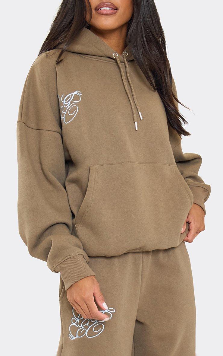 Tie Waist Graphic Detail Wide Leg Joggers In Olive Green