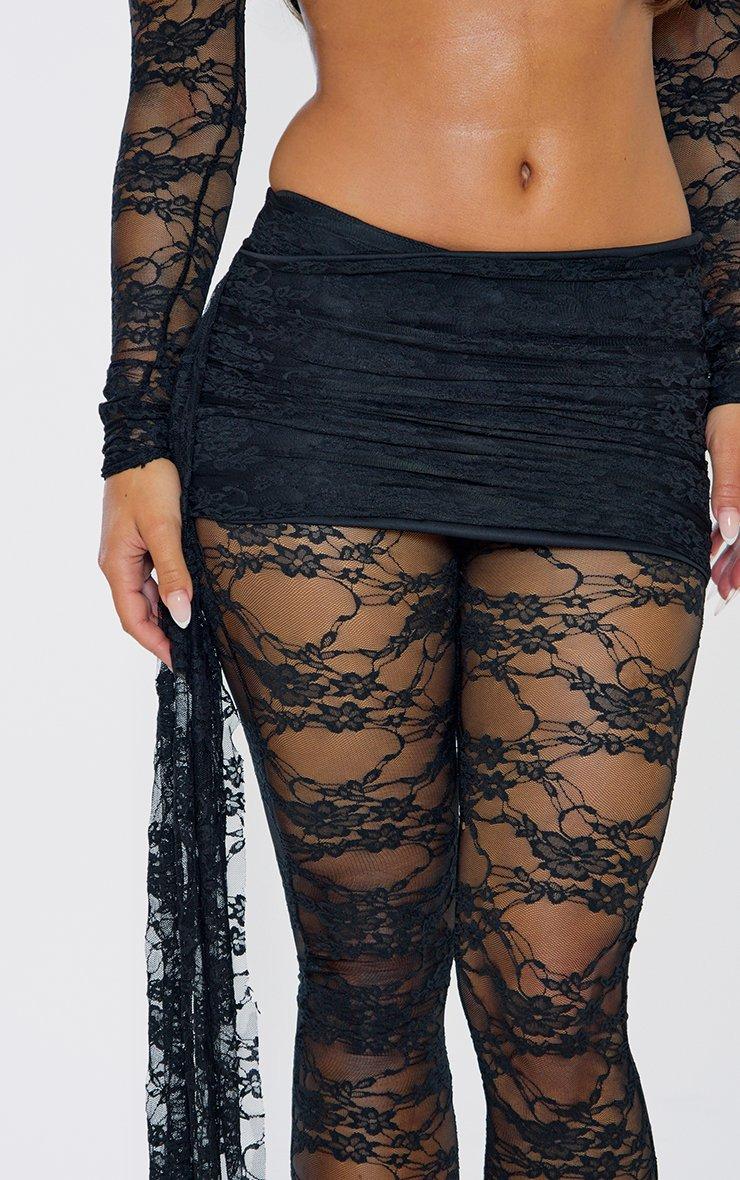 Fold Over Waistband Drape Side Leggings In Black Lace