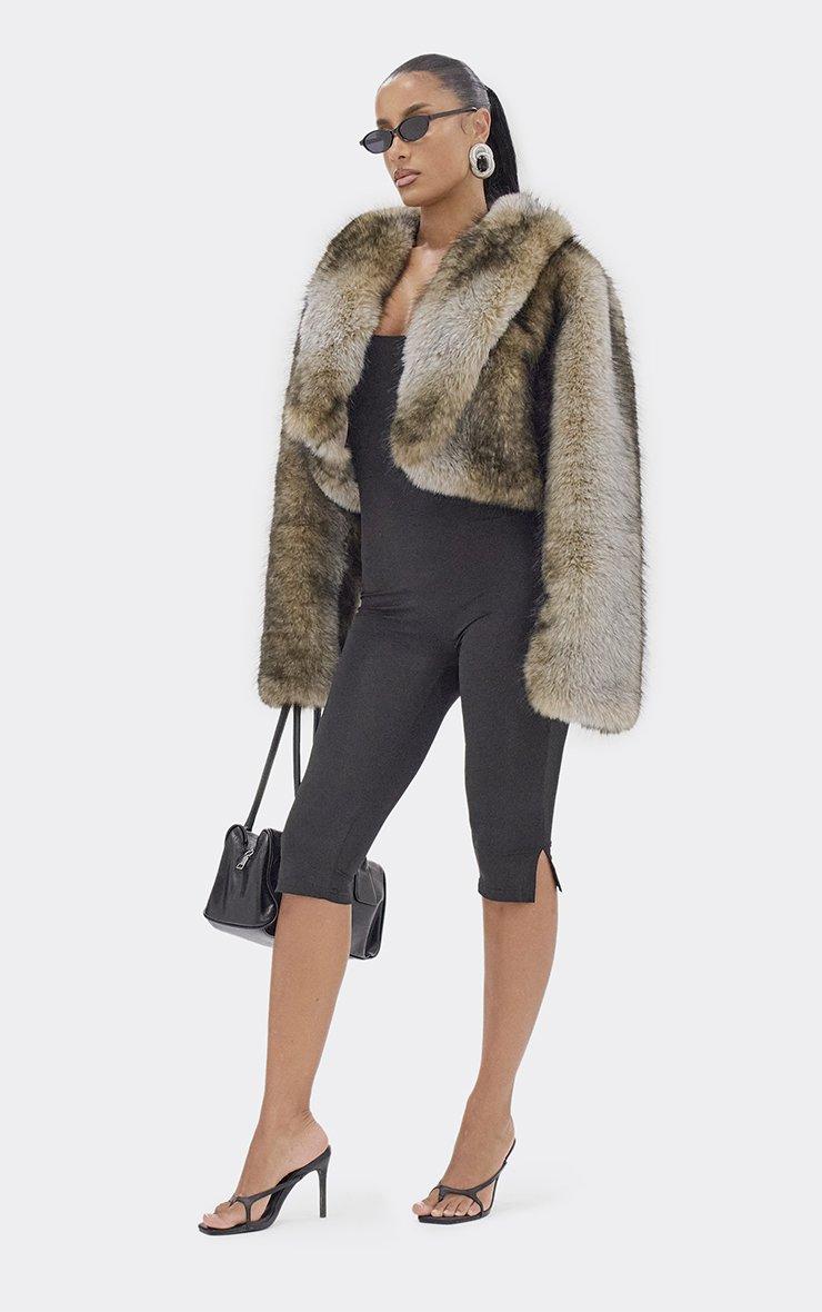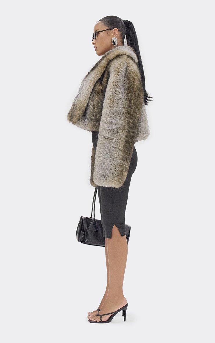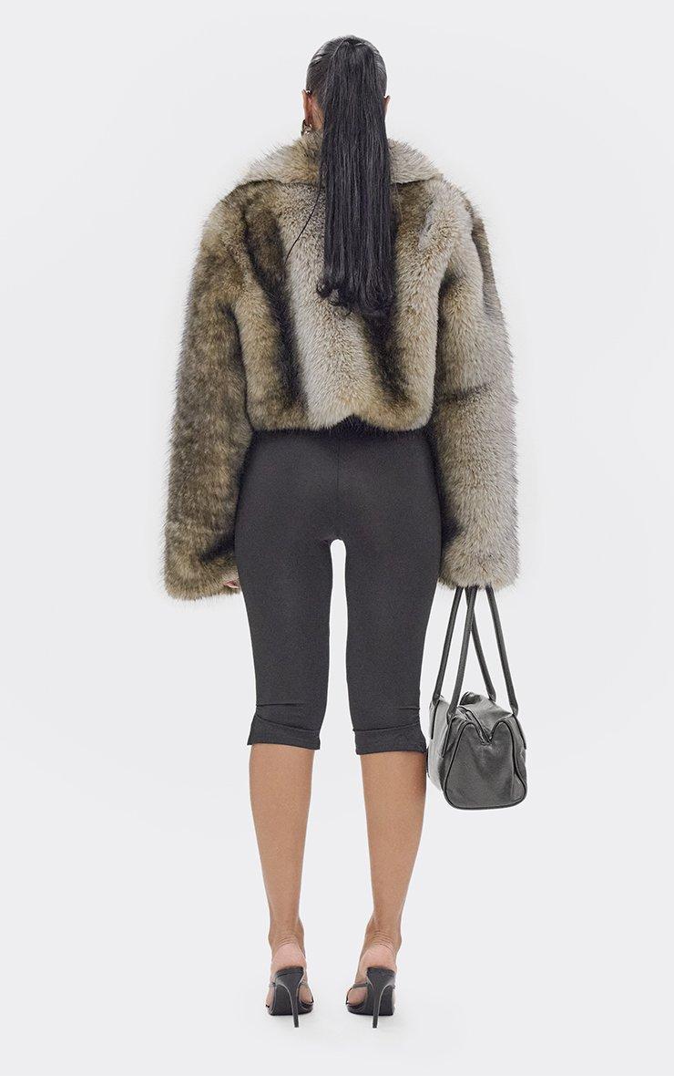 Long Sleeve Oversized Collar Panel Detail Cropped Coat In Brown Faux Fur