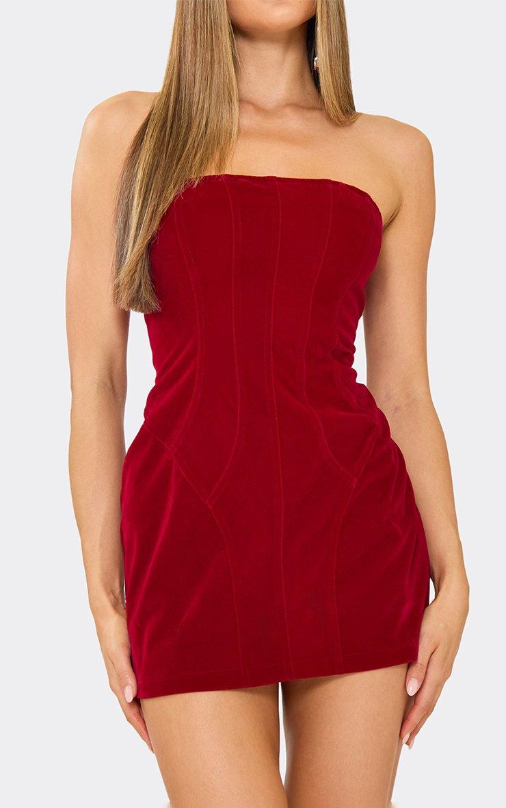 45908 Lace Square Neckline Frill Hem Mini Dress In Red