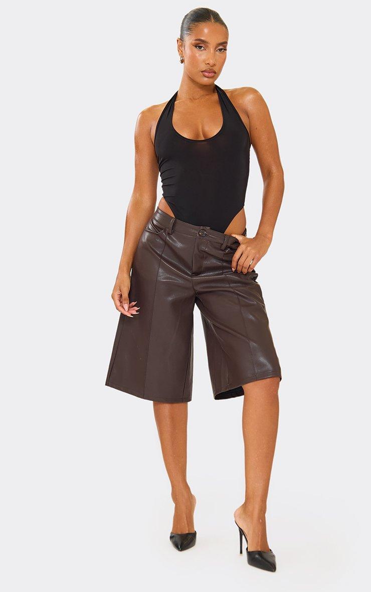 Plunge Halterneck High Leg Detail Bodysuit In Black