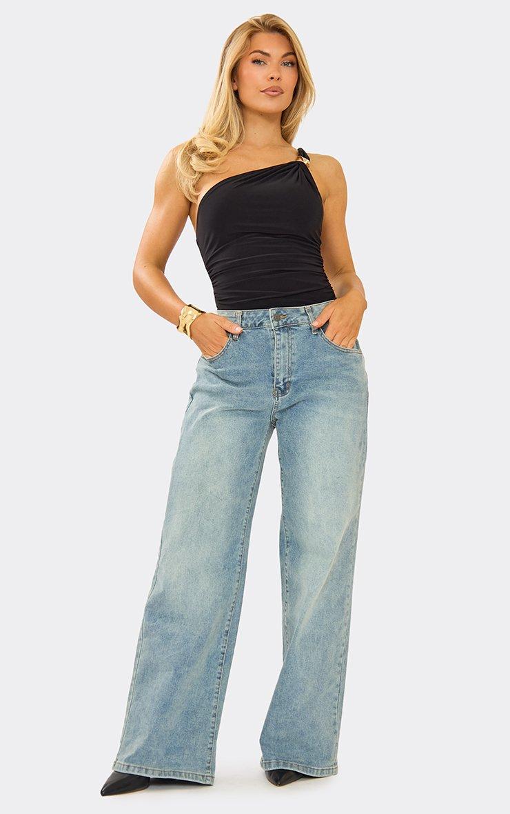 One Shoulder Trim Detail Bodysuit In Black