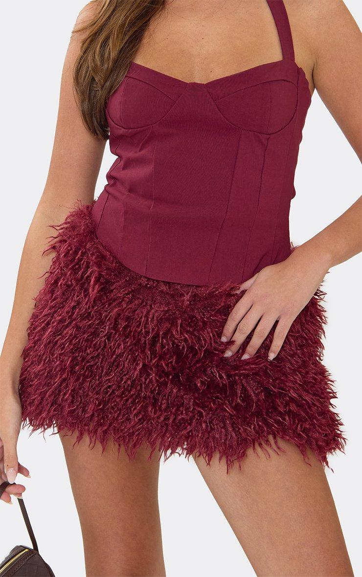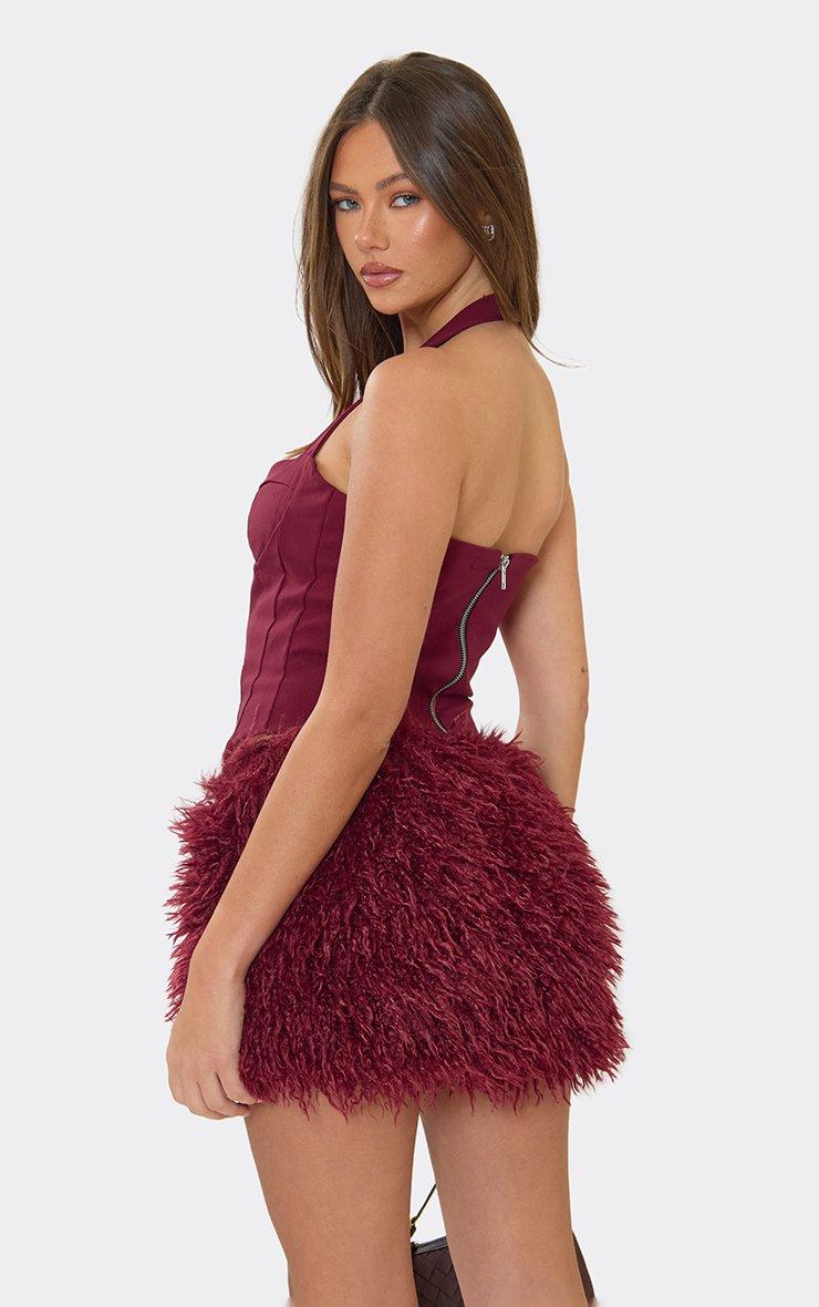 Long Flared Sleeve Drape Detail Mini Bodycon Dress In Burgundy Slinky