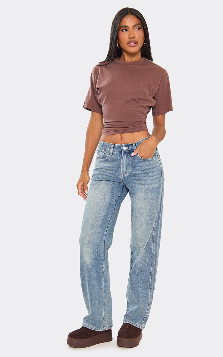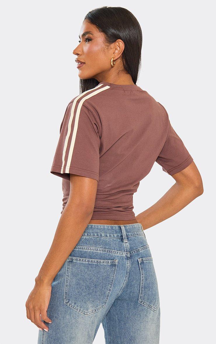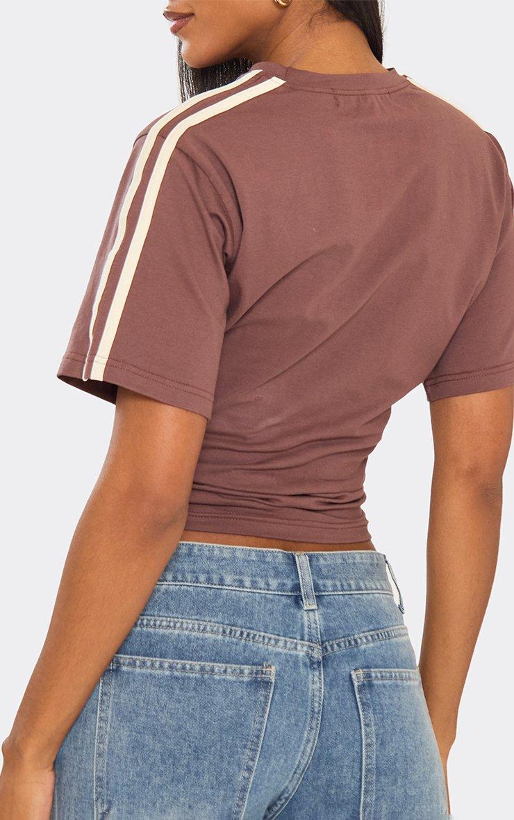 Short Sleeve Cinched Waist Fitted Contrast Stripe Detail T-Shirt In Brown