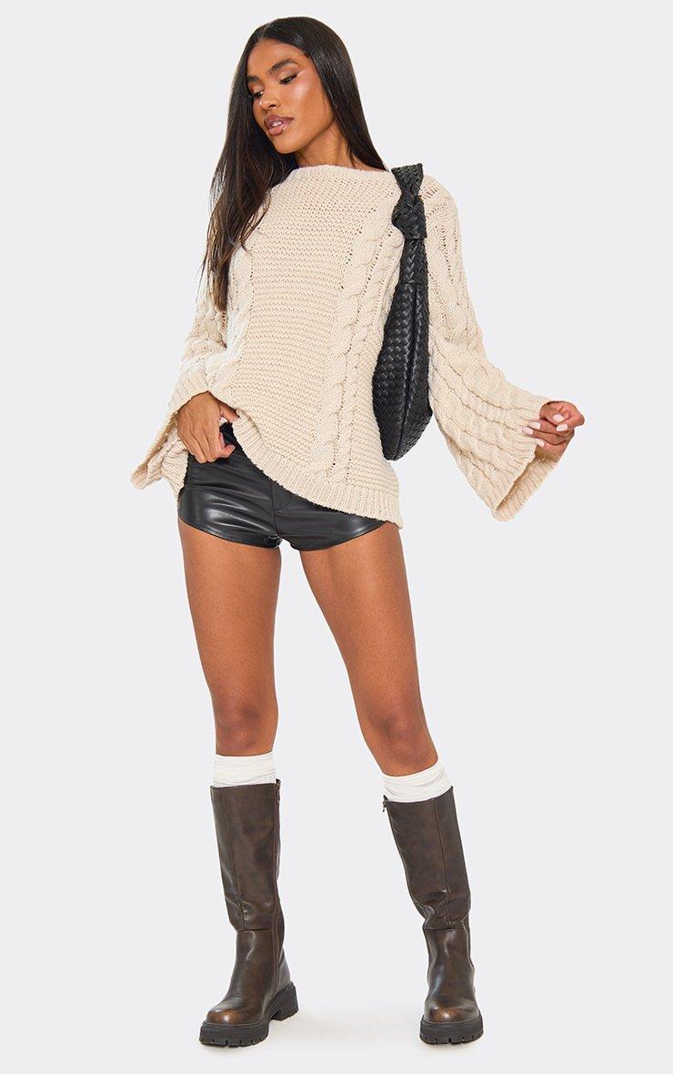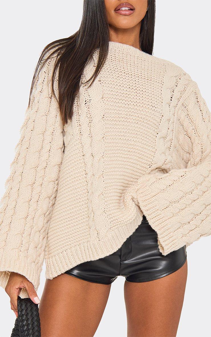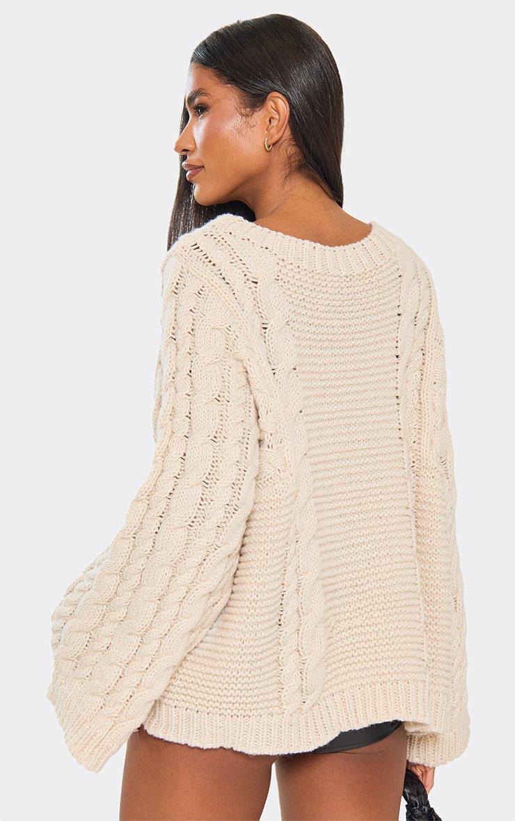 Long Sleeve Oversized Jumper In Cream Chunky Knit