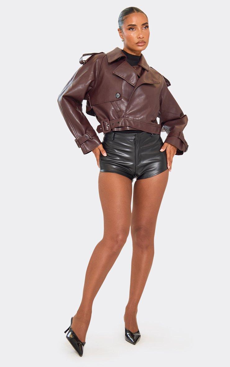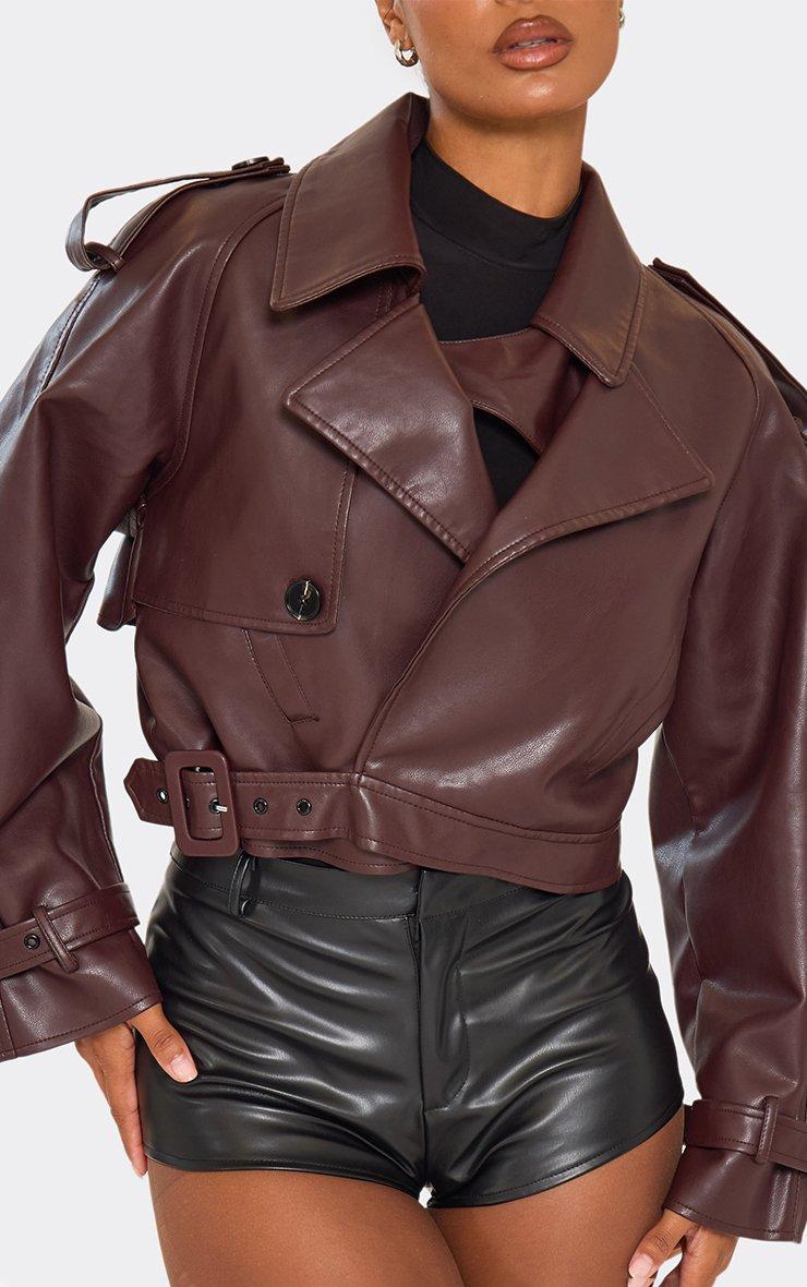 Long Sleeve Belted Biker Jacket In Burgundy Faux Leather