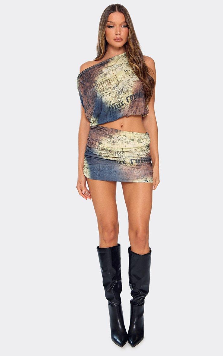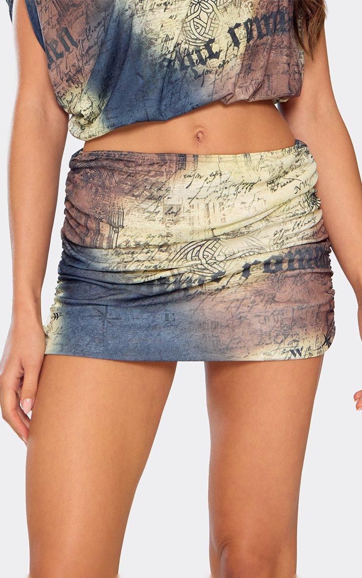 Low Waist Ruched Detail Mini Skirt In Multi Printed