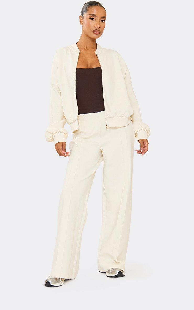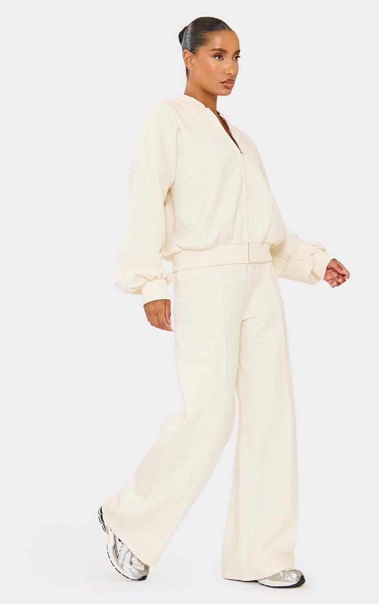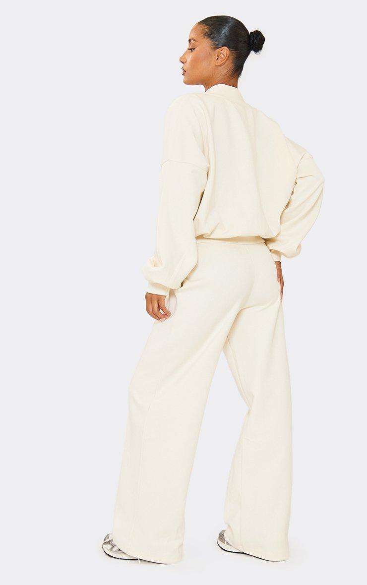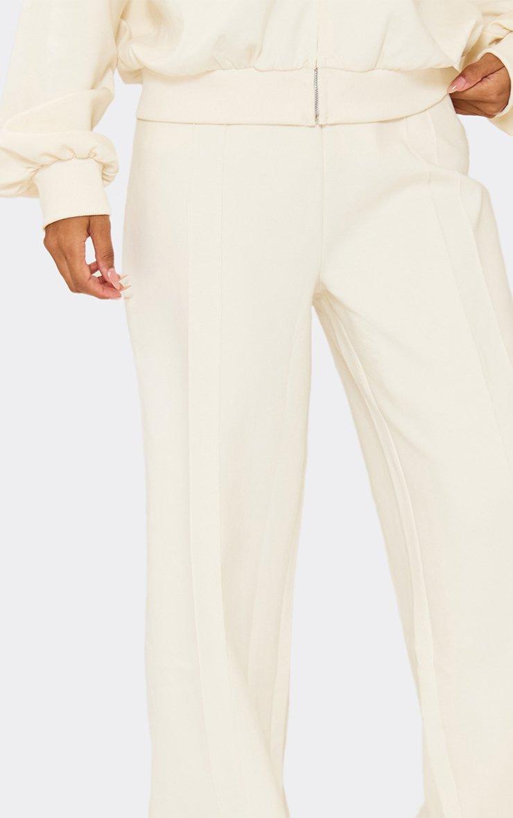 mid rise seam detail wide leg joggers in cream interlock