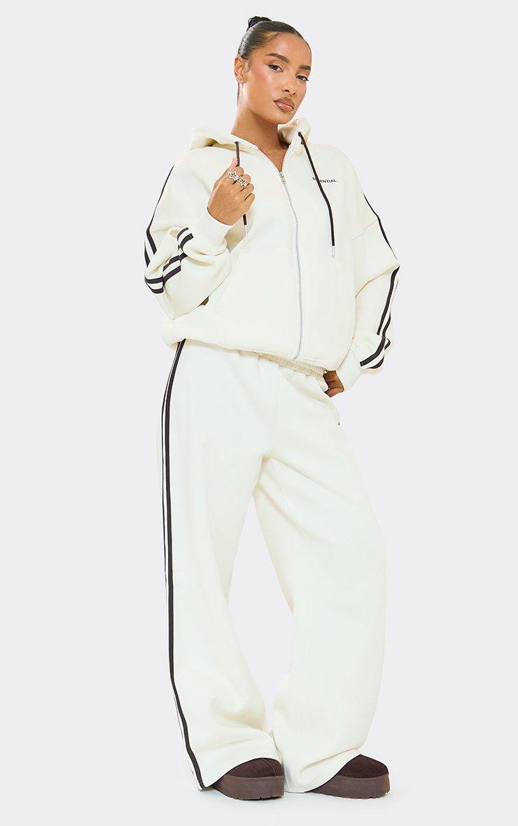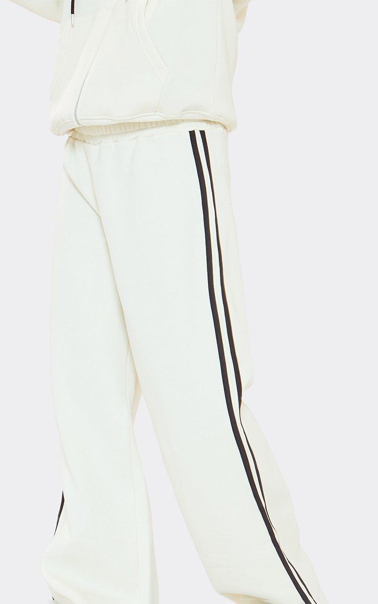 mid rise contrast stripe detail wide leg joggers in cream