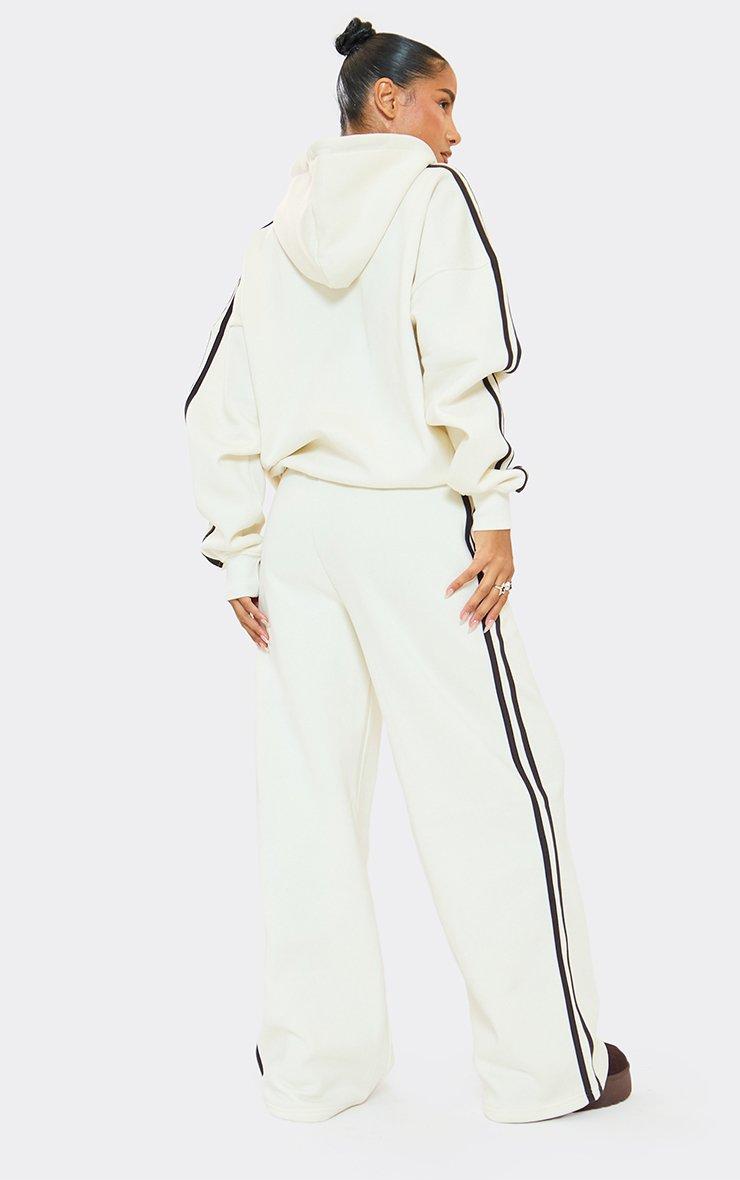 Mid Rise Contrast Stripe Detail Wide Leg Joggers In Cream