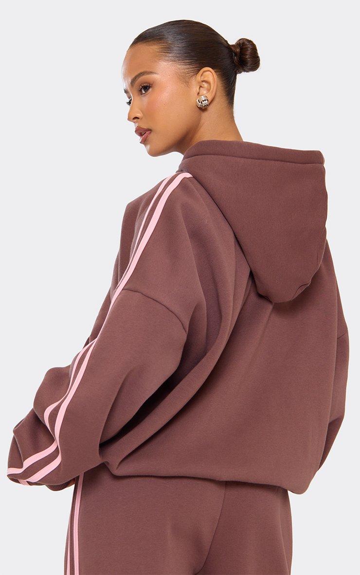 Long Sleeve Contrast Side Stripe Zip Up Oversized Hoodie In Brown