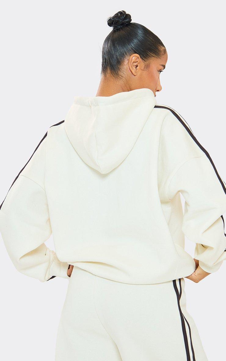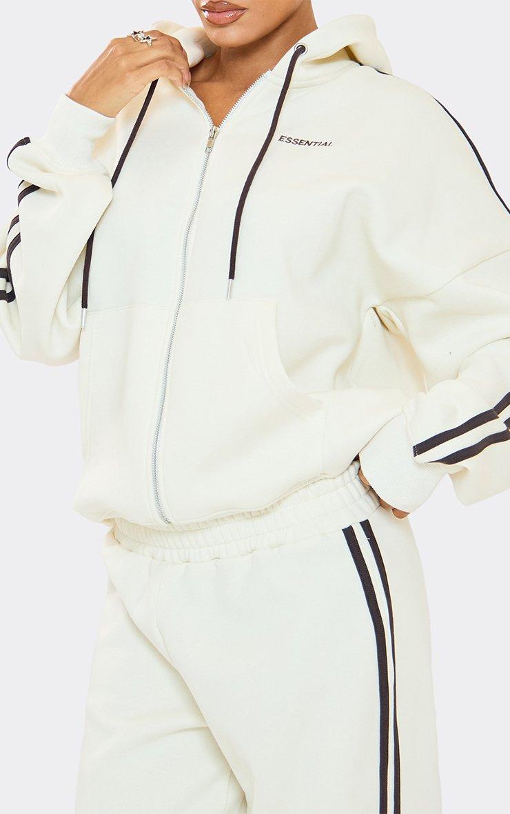 Oversized Contrast Stripe Detail Essential Graphic Zip Up Hoodie In Cream