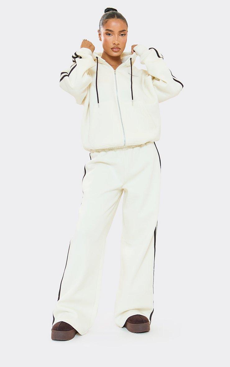 Mid Rise Contrast Stripe Detail Wide Leg Joggers In Cream