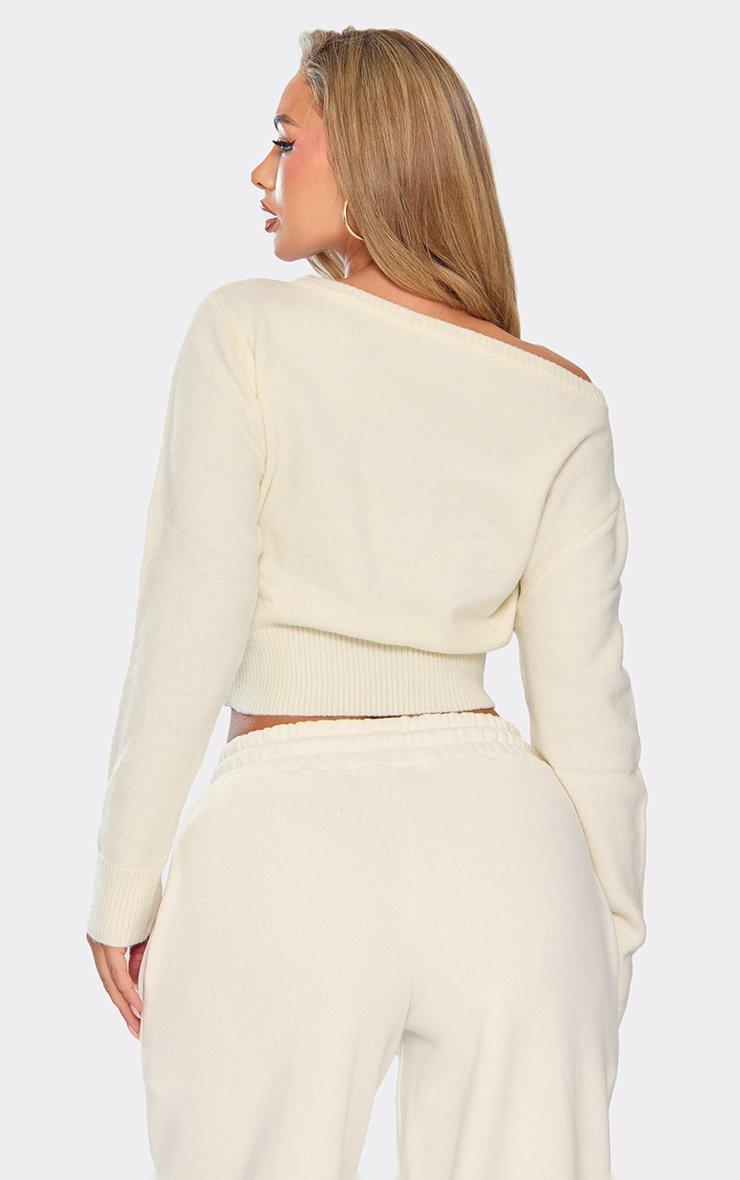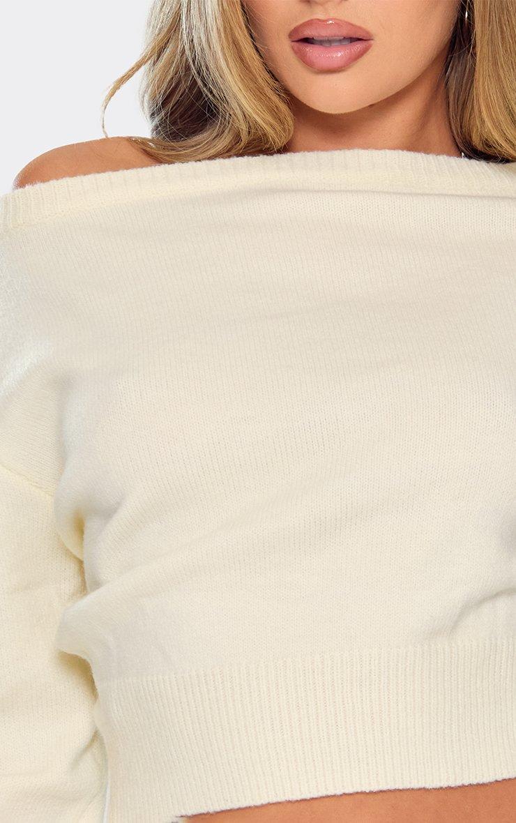 Long Sleeve Bardot Jumper In Cream Compact Knit