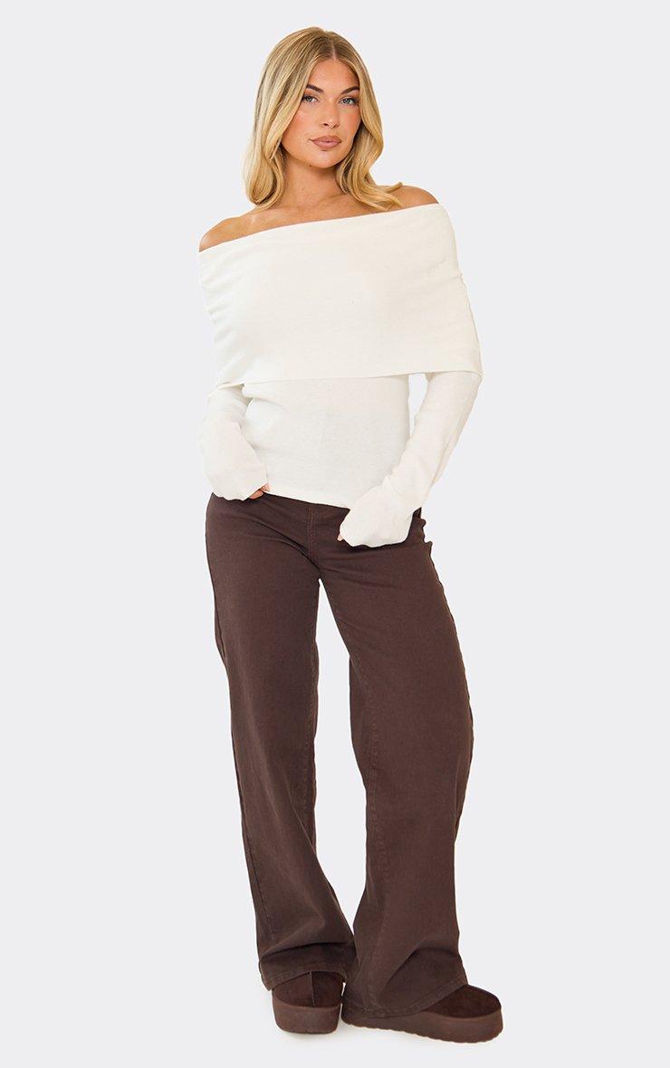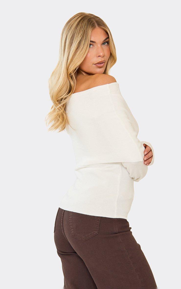 Long Sleeve Bardot Jumper In Cream Compact Knit