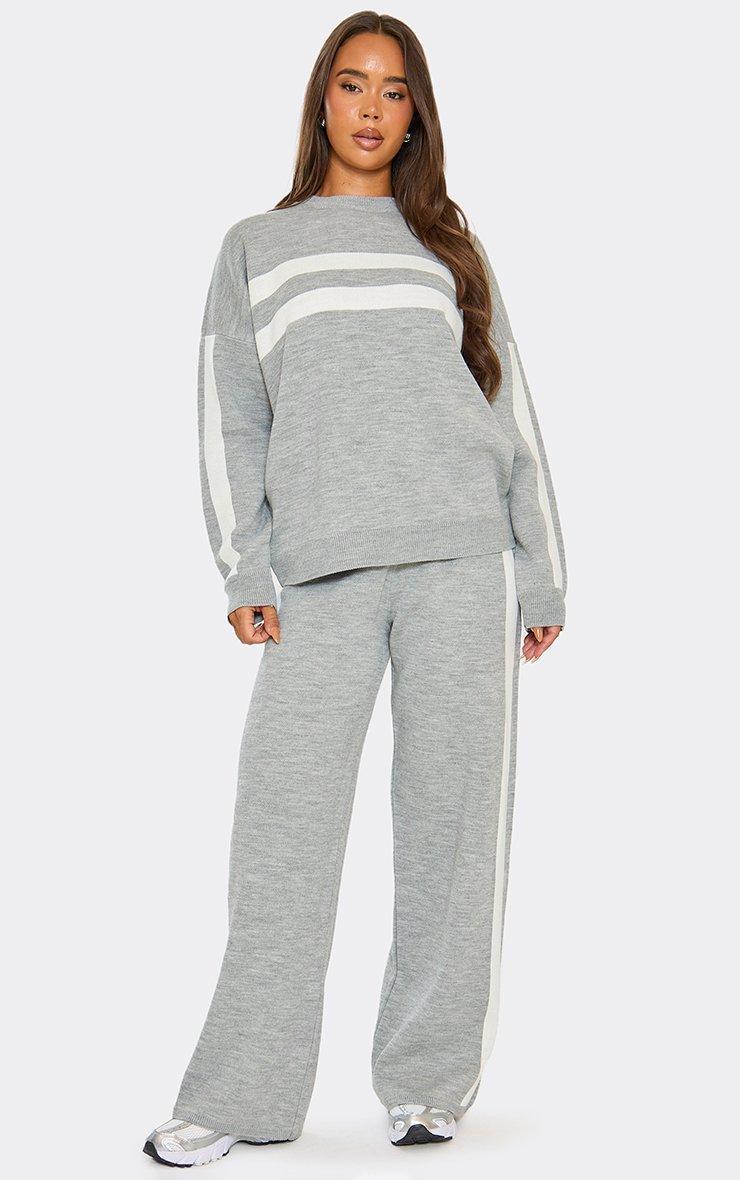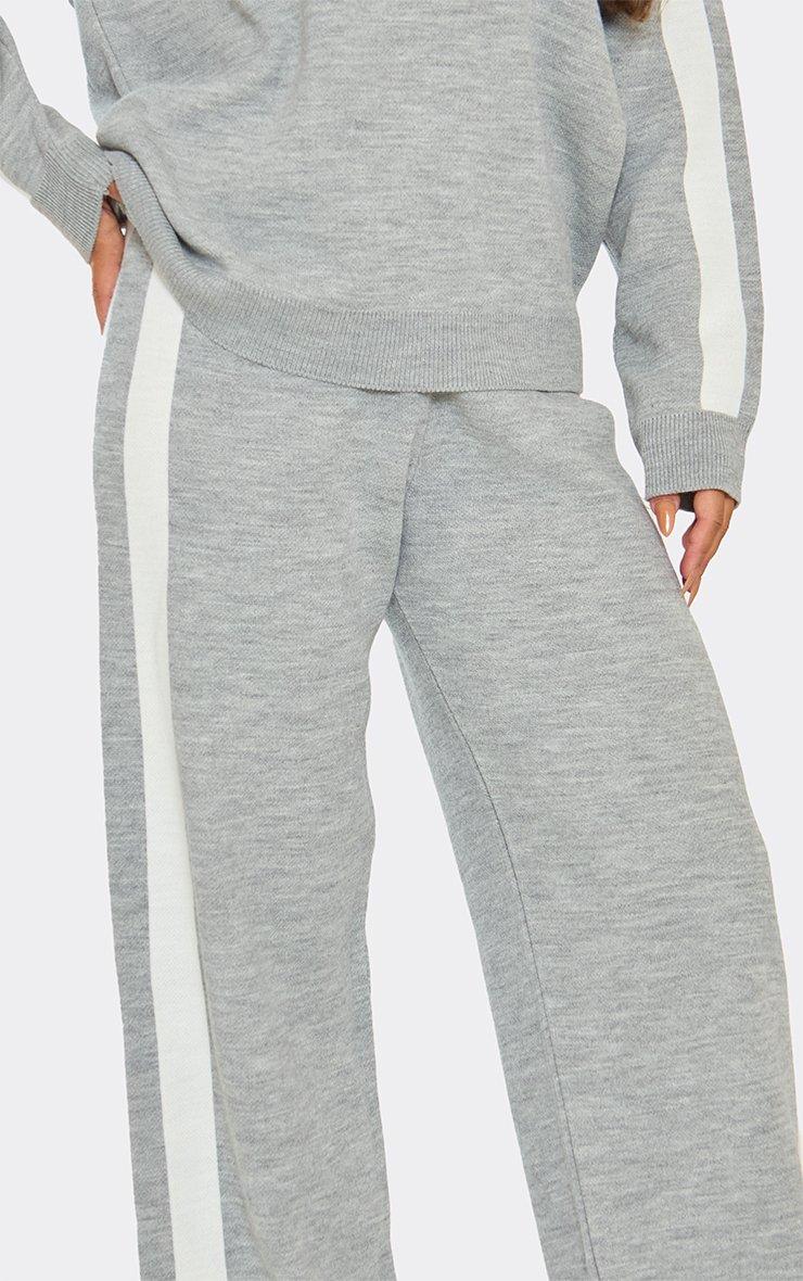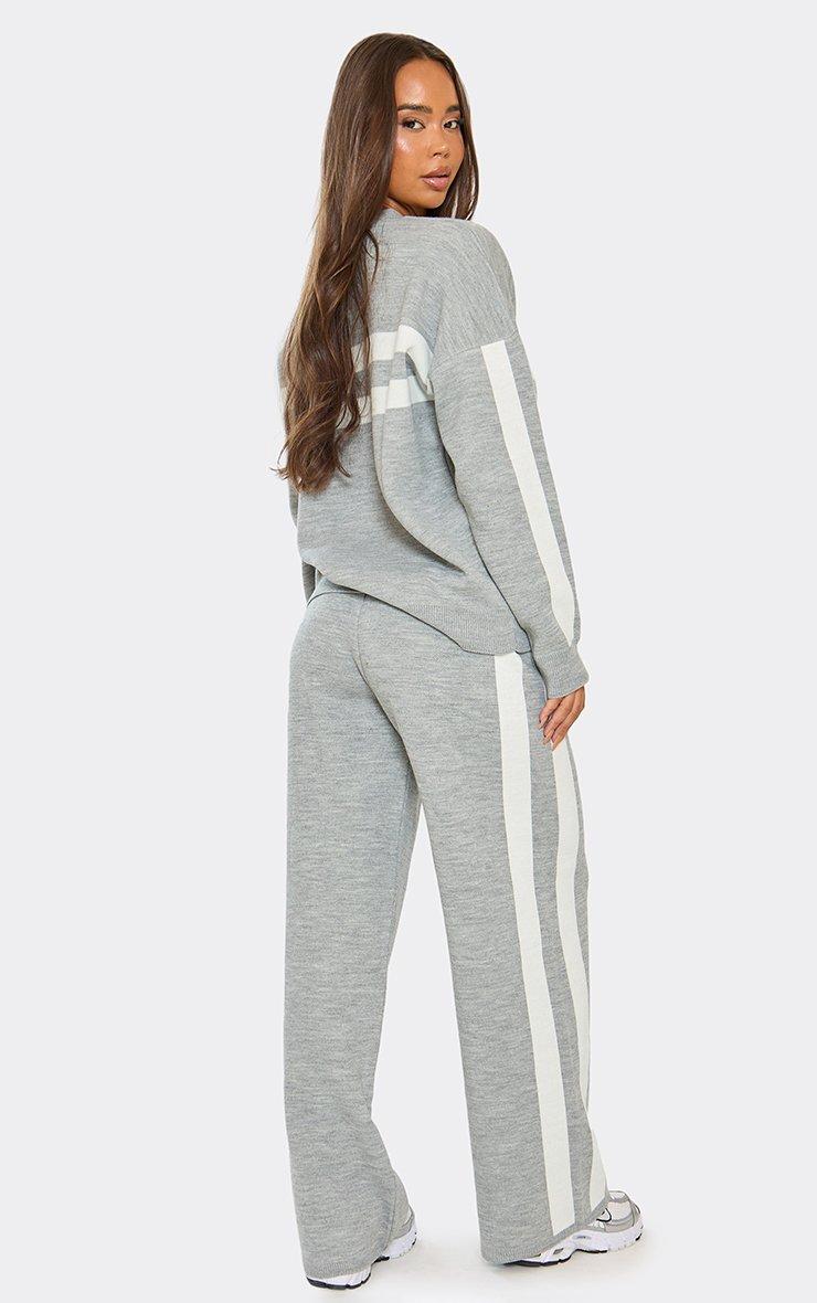 Mid Rise Contrast Swirl Detail Wide Leg Trousers In Grey Knit