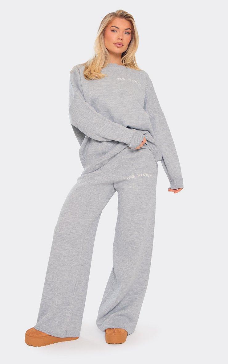 Long Sleeve Crew Neck Ego Graphic Oversized Jumper In Grey Knit