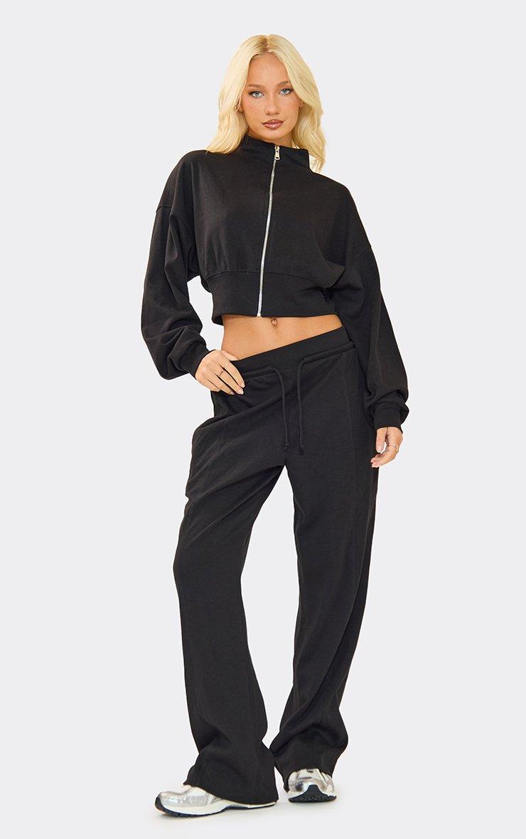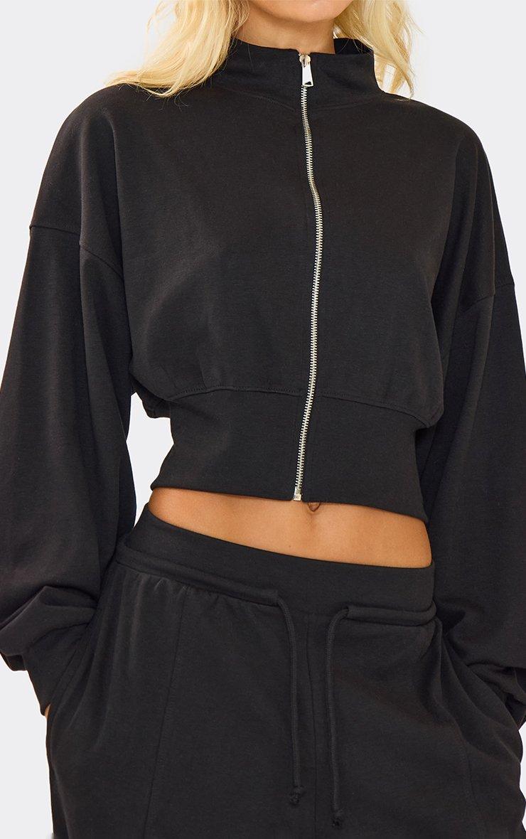 Long Sleeve Popper Detail Cinched Waist Sweatshirt In Black