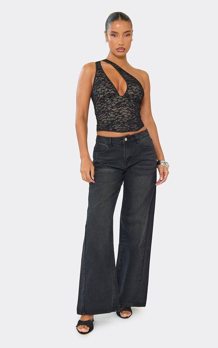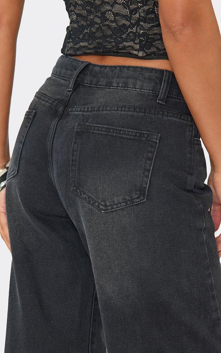 Low Rise Wide Leg Washed Detail Jeans In Black Denim.