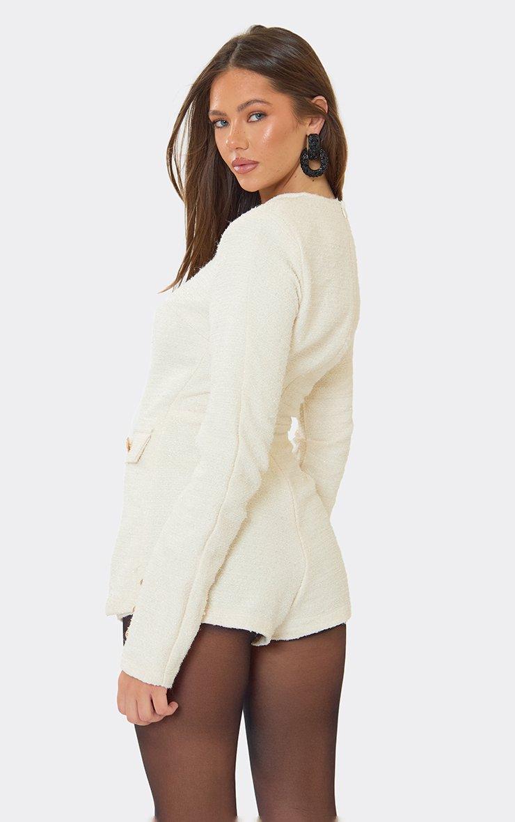 45908 Wool Look Pocket Detail Cinched Waist Blazer Playsuit In Cream