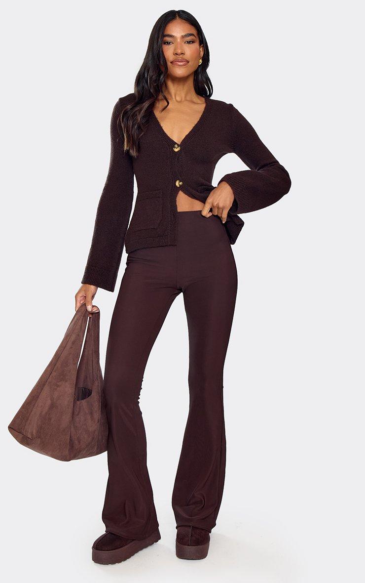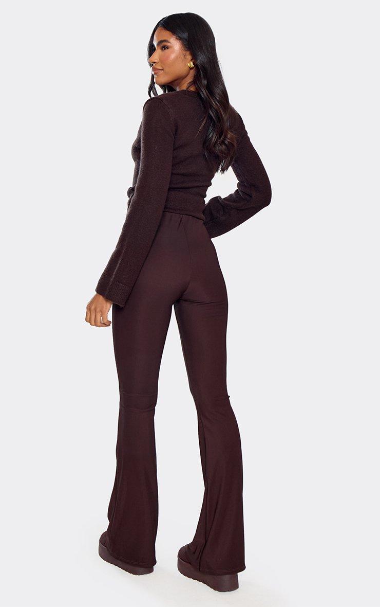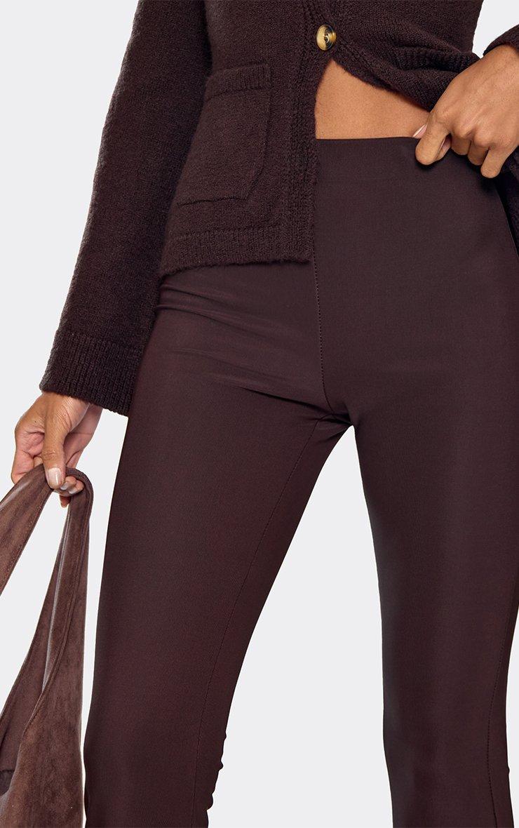 Mid Rise Tailored Trousers In Chocolate Brown Faux Leather