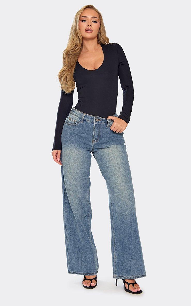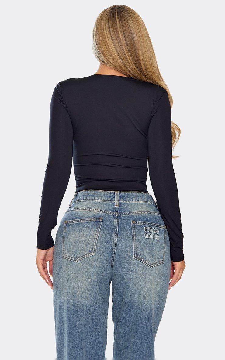 Long Sleeve Cowl Back Detail Top In Black Slinky