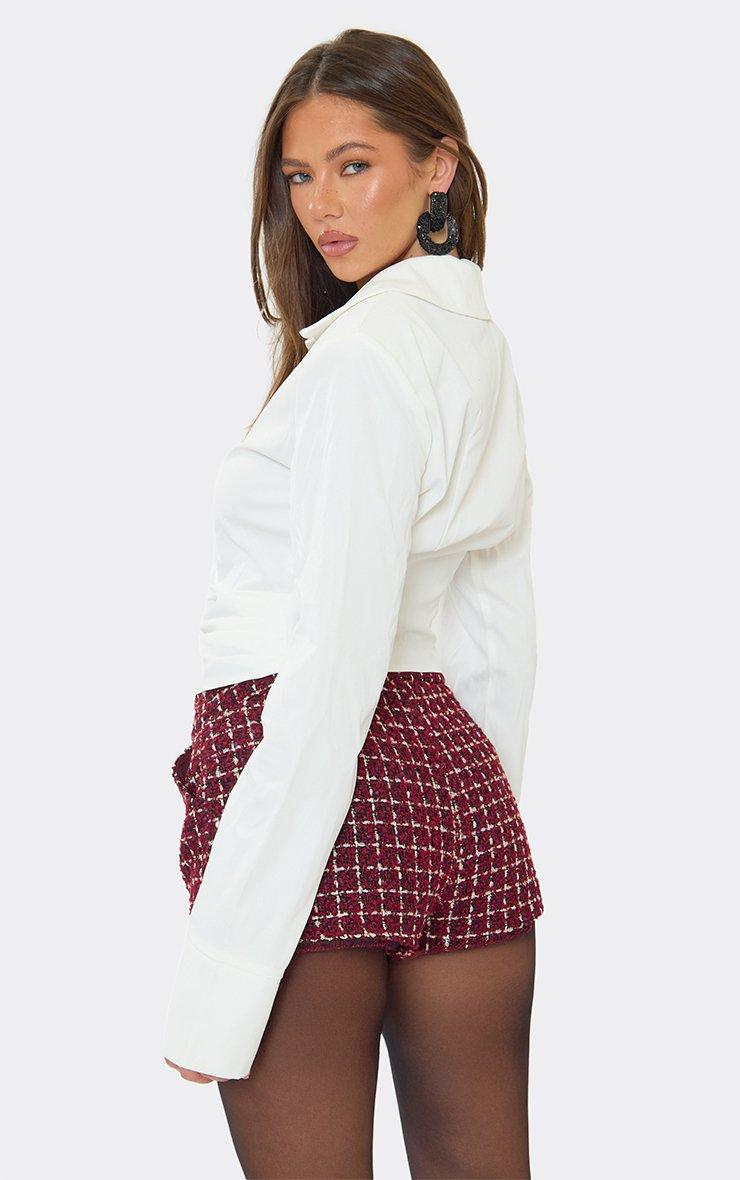 low rise shorts in burgundy checked tweed