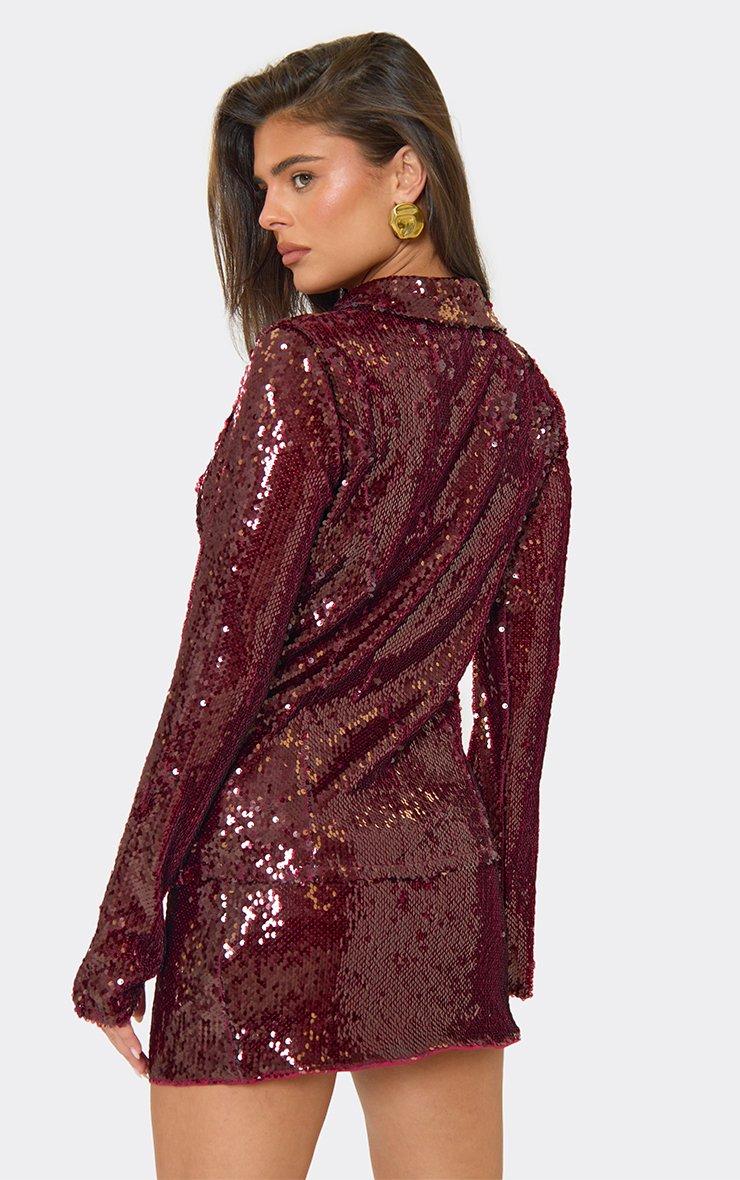 Mid Rise Mini Skirt In Burgundy Textured Sequin