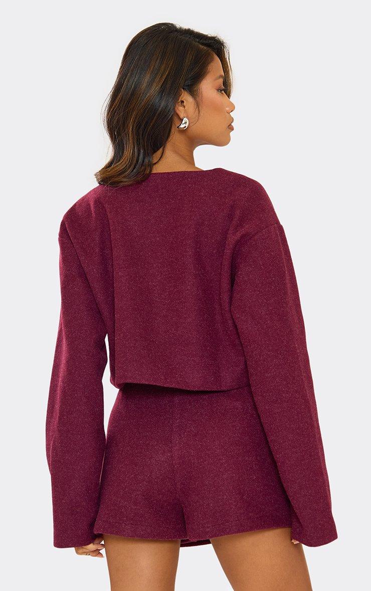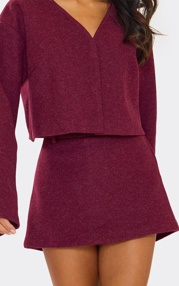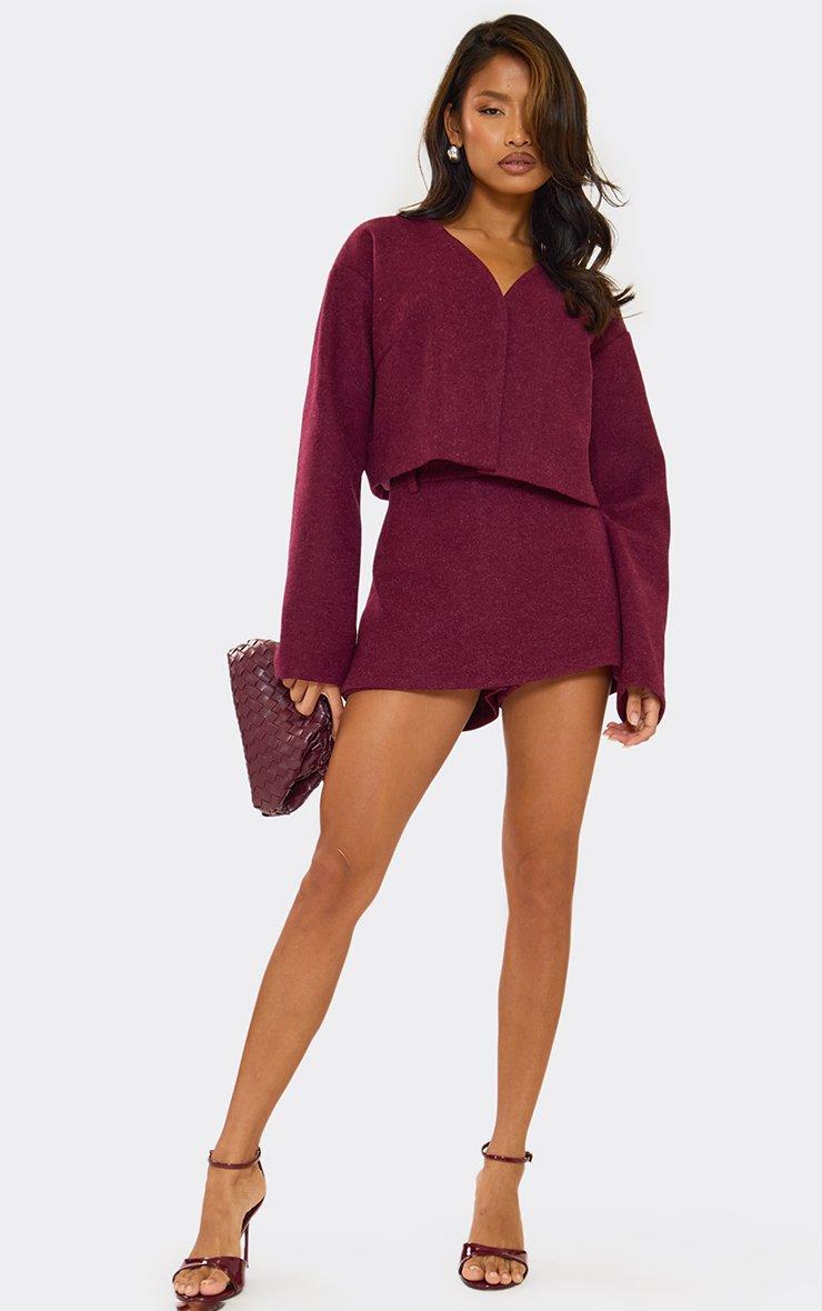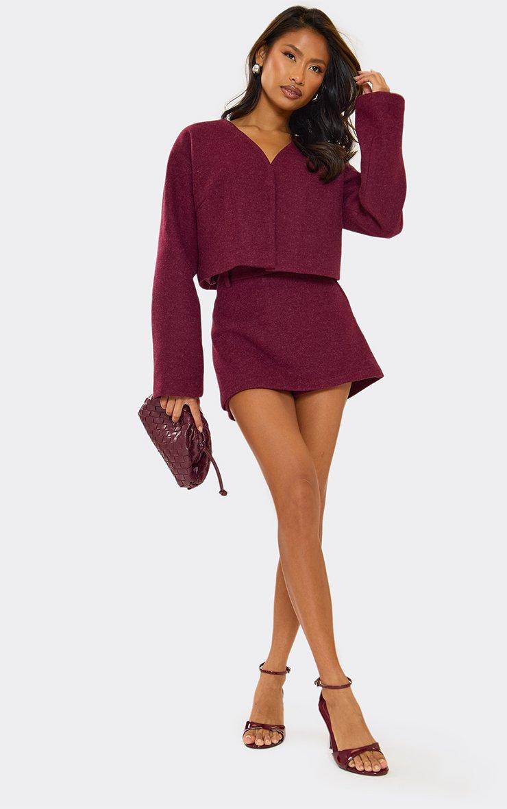Mid Rise Wool Look Mini Skort In Burgundy