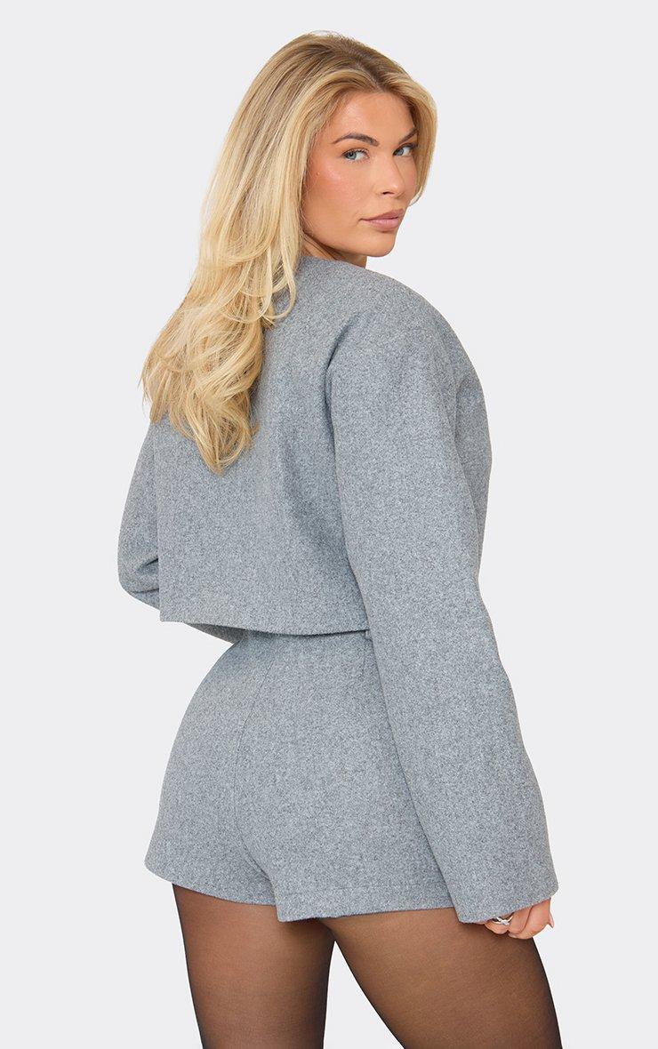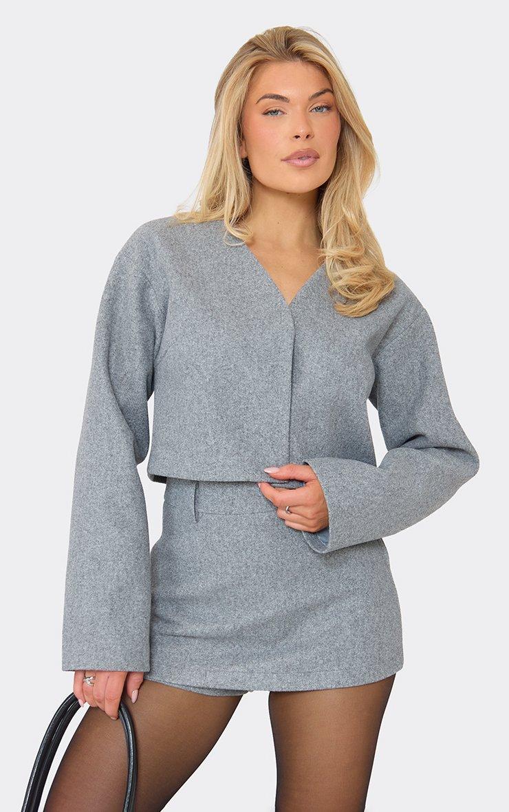 V Neck Wool Look Cropped Jacket In Grey
