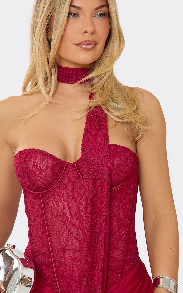 Square Neck Top And 3D Flower Detail Mini Skirt Co-Ord Set In Burgundy