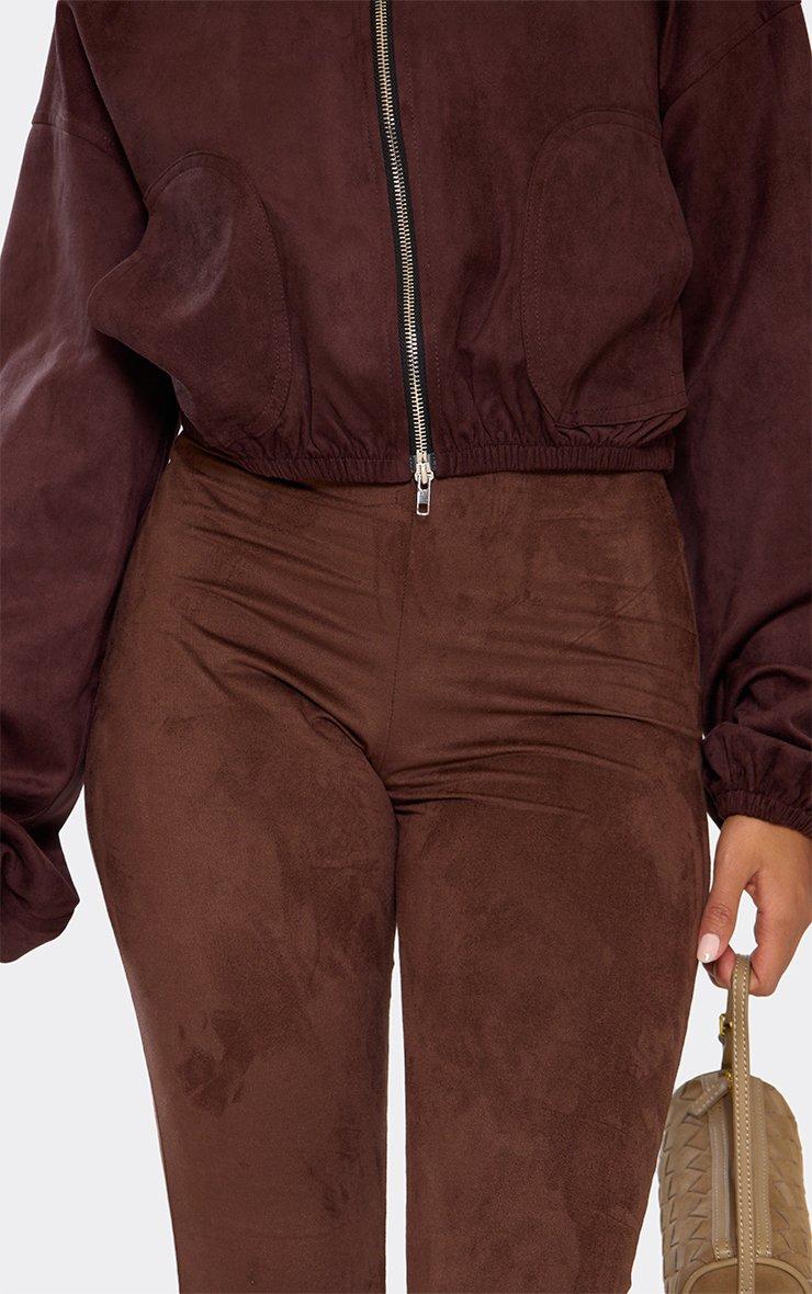 Mid Rise Tailored Trousers In Chocolate Brown Faux Leather