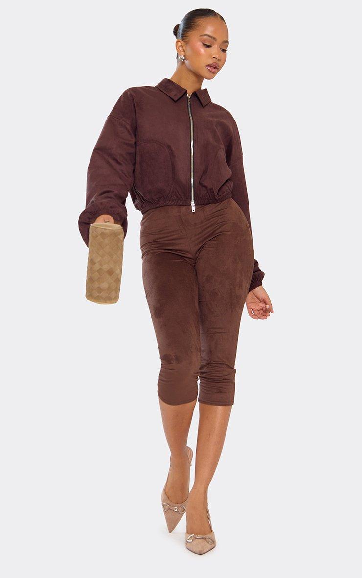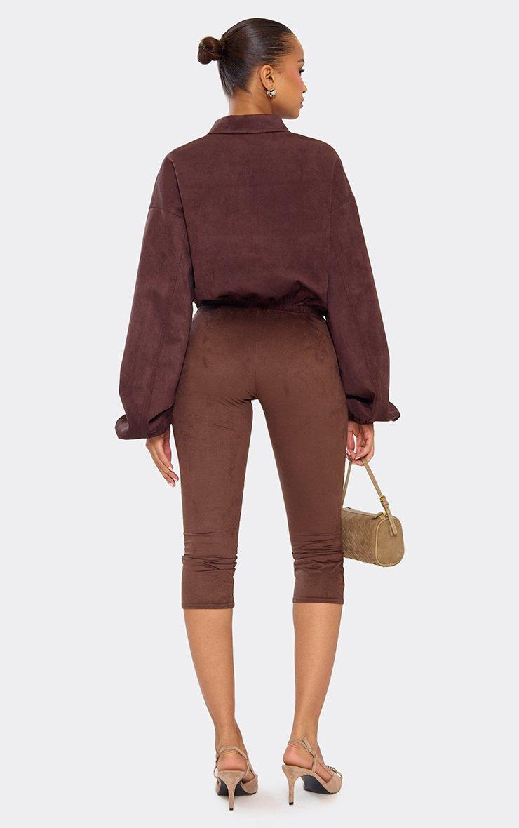 Mid Rise Capri Trousers In Brown Faux Suede