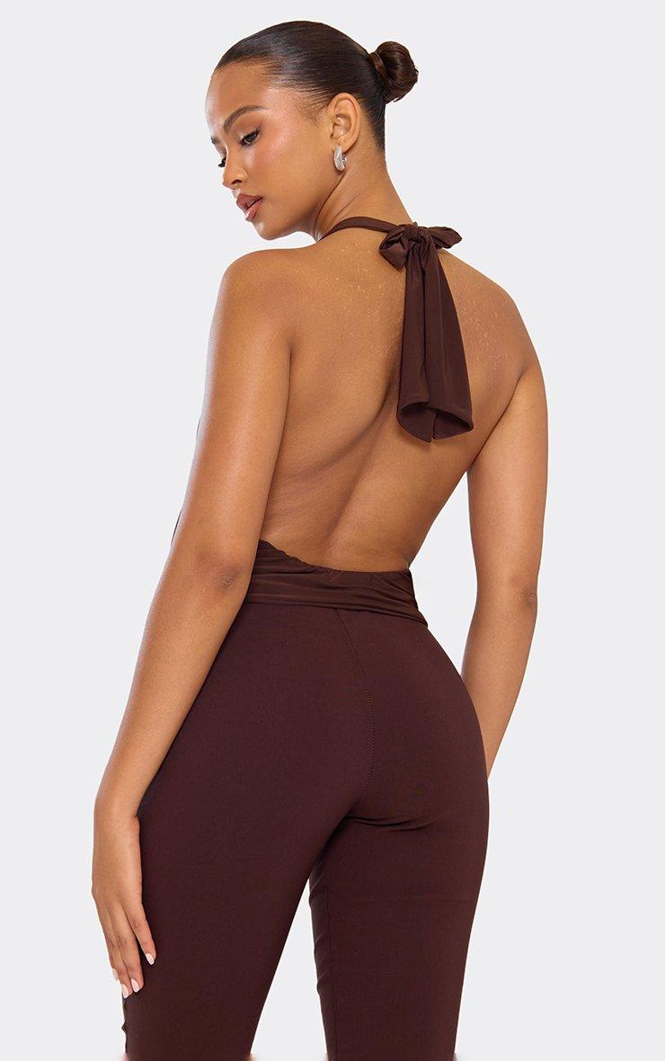 cowl halterneck open back studded detail top in chocolate brown