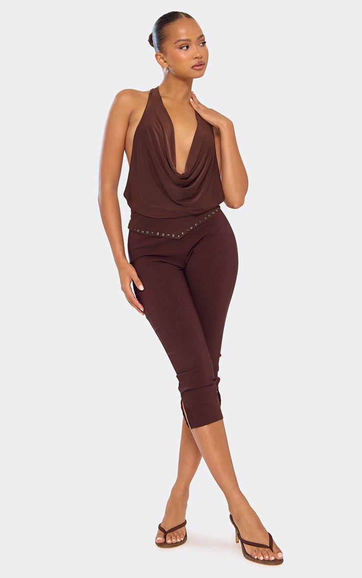 Cowl Halterneck Open Back Studded Detail Top In Chocolate Brown