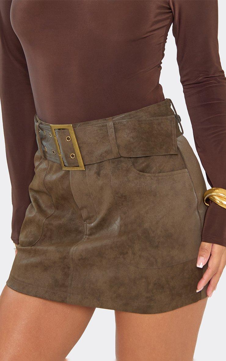 Mid Rise Belt Loop Detail Micro Skort In Brown Suede