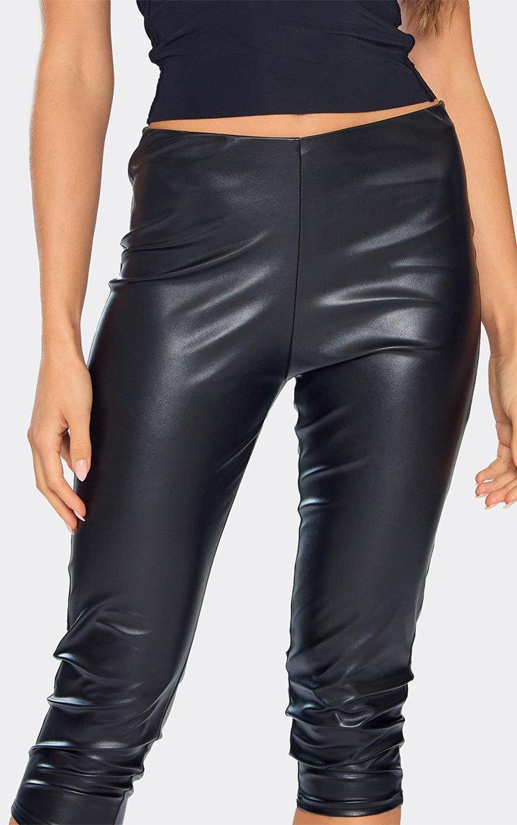 Mid Rise Capri Trousers In Black Faux Leather