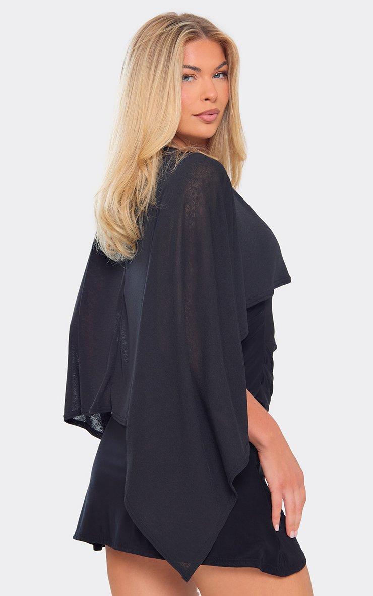 Cape Overlay Ruched Detail Mini Dress In Black