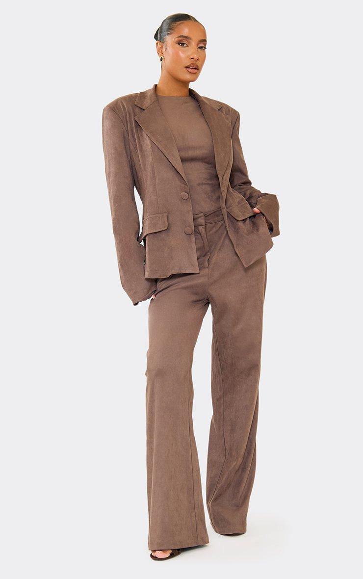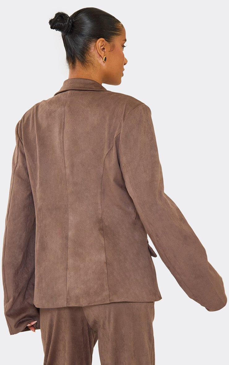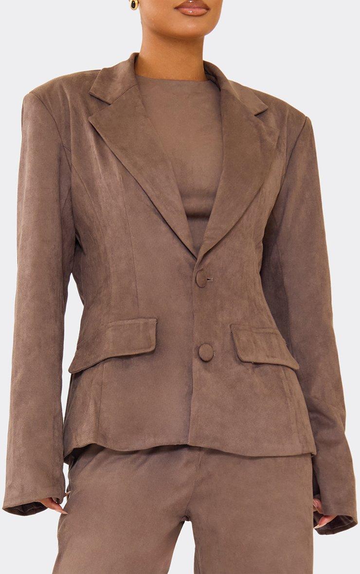 Oversized Cinched Waist Blazer Jacket In Taupe Faux Suede