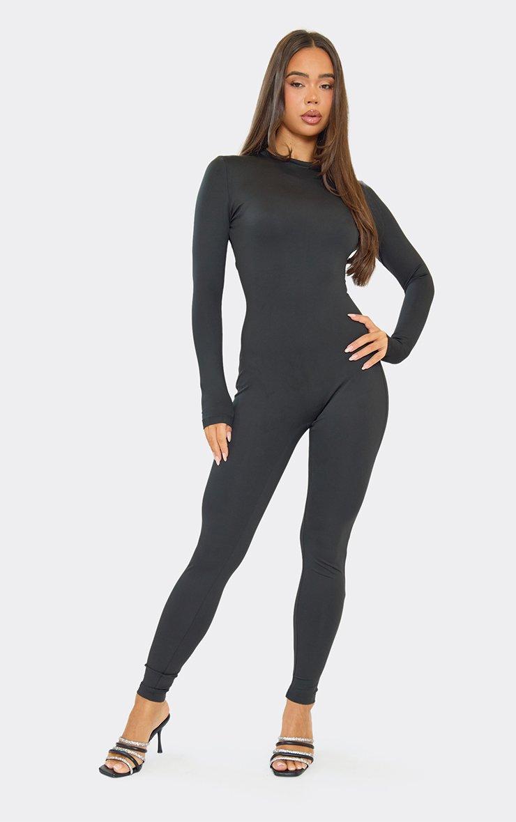 Plunge Halterneck Open Back Jumpsuit In Black Slinky