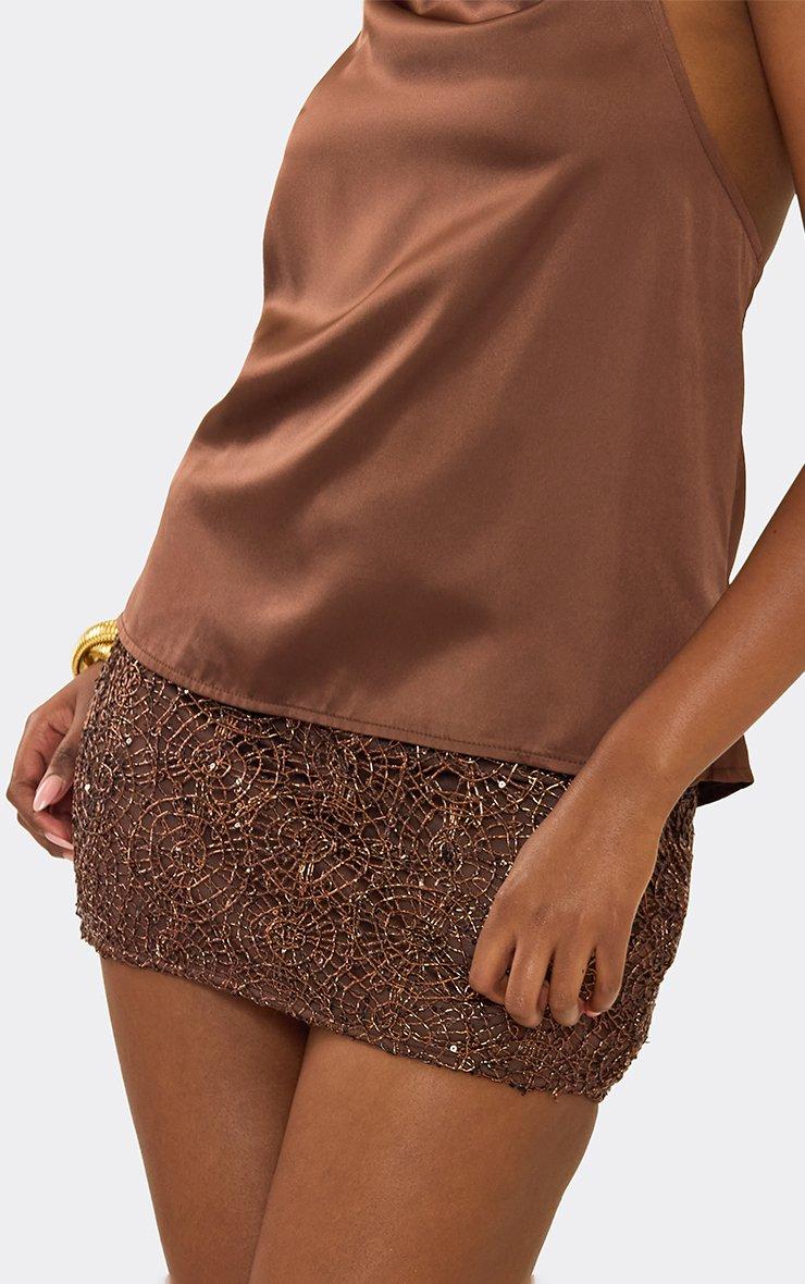 Mini Bodycon Skirt In Brown Metallic Texture
